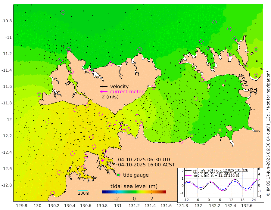 74cm/s 77T +4cm/s rms + 6cm/s 51T. Darwin_C1 52m 42cm/s 88T +4cm/s rms + 7cm/s -161T. Darwin_CW1 22m 40cm/s 74T +4cm/s rms + 8cm/s 61T. Darwin_CW2 34m 42cm/s 42T +3cm/s rms + 9cm/s 98T. Darwin_CW3 22m 48cm/s 88T +5cm/s rms + 7cm/s 88T. Darwin_C3 56m 40cm/s 64T +2cm/s rms + 9cm/s -126T. Darwin_CTbW 22m 25cm/s 88T +1cm/s rms + 1cm/s -47T. DARBGF 30m 27cm/s 115T +4cm/s rms + 3cm/s 80T. NRSDAR 19m -10cm Goodrich Bank 101cm Point Jenny 100cm Native Point 100cm Fish Reef 116cm Tapa Bay 45cm Point Fawcett (Offshore) 112cm Burge Point 97cm Munkunuwa 86cm Beagle A 112cm Parsons Bank 116cm Fenton Patches 118cm Hancox Shoal Area 127cm Nightcliff 119cm Darwin 110cm Charles Point Patches 84cm Glyde Point 65cm Chambers Bay 50cm Point Stuart 71cm Cape Hotham 54cm Christine Reef 50cm West Alligator Head 38cm East Field Island 48cm Two Hills Bay 54cm Camp Point 99cm Medina Inlet South 32cm South Barlow Point 18cm St. Asaph Bay -4cm Cape Van Dieman -3cm Snake Bay -3cm Cache Point 8cm Point Jahleel (Off) 31cm Cape Don 14cm Port Essington 18cm Smith Point - West 17cm NW Peacock Island 2cm North Of Jones Shoal 3cm Peacock Island 41cm Point David 23cm D'urville Point 44cm Copeland Island 31cm One Tree Point