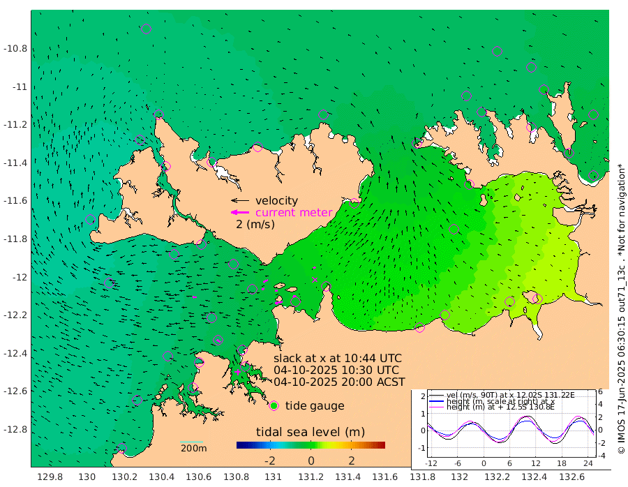 86cm/s -103T +4cm/s rms + 6cm/s 51T. Darwin_C1 52m 38cm/s -86T +4cm/s rms + 7cm/s -161T. Darwin_CW1 22m 32cm/s -107T +4cm/s rms + 8cm/s 61T. Darwin_CW2 34m 27cm/s -119T +3cm/s rms + 9cm/s 98T. Darwin_CW3 22m 29cm/s -93T +5cm/s rms + 7cm/s 88T. Darwin_C3 56m 56cm/s -116T +2cm/s rms + 9cm/s -126T. Darwin_CTbW 22m 46cm/s -88T +1cm/s rms + 1cm/s -47T. DARBGF 30m 47cm/s -57T +4cm/s rms + 3cm/s 80T. NRSDAR 19m -69cm Goodrich Bank -101cm Point Jenny -101cm Native Point -86cm Fish Reef -91cm Tapa Bay -95cm Point Fawcett (Offshore) -85cm Burge Point -87cm Munkunuwa -98cm Beagle A -75cm Parsons Bank -84cm Fenton Patches -63cm Hancox Shoal Area -74cm Nightcliff -64cm Darwin -78cm Charles Point Patches -24cm Glyde Point 25cm Chambers Bay 44cm Point Stuart -1cm Cape Hotham 11cm Christine Reef 56cm West Alligator Head 82cm East Field Island 10cm Two Hills Bay 7cm Camp Point -83cm Medina Inlet South -91cm South Barlow Point -85cm St. Asaph Bay -74cm Cape Van Dieman -71cm Snake Bay -71cm Cache Point -59cm Point Jahleel (Off) -49cm Cape Don -59cm Port Essington -63cm Smith Point - West -58cm NW Peacock Island -56cm North Of Jones Shoal -19cm Peacock Island -43cm Point David -61cm D'urville Point -39cm Copeland Island -44cm One Tree Point