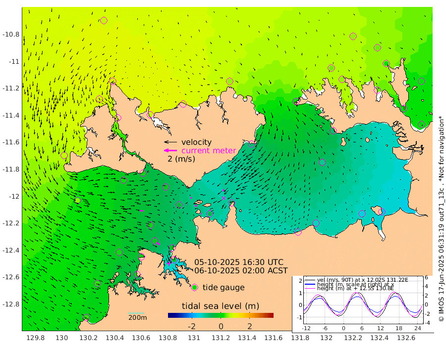 10cm/s 78T +4cm/s rms + 6cm/s 51T. Darwin_C1 52m 11cm/s -98T +4cm/s rms + 7cm/s -161T. Darwin_CW1 22m 3cm/s -95T +4cm/s rms + 8cm/s 61T. Darwin_CW2 34m 35cm/s -147T +3cm/s rms + 9cm/s 98T. Darwin_CW3 22m 36cm/s -89T +5cm/s rms + 7cm/s 88T. Darwin_C3 56m 24cm/s 63T +2cm/s rms + 9cm/s -126T. Darwin_CTbW 22m 54cm/s 97T +1cm/s rms + 1cm/s -47T. DARBGF 30m 60cm/s 128T +4cm/s rms + 3cm/s 80T. NRSDAR 19m 74cm Goodrich Bank 24cm Point Jenny 26cm Native Point 16cm Fish Reef 2cm Tapa Bay 69cm Point Fawcett (Offshore) -6cm Burge Point 21cm Munkunuwa 47cm Beagle A -15cm Parsons Bank 2cm Fenton Patches -36cm Hancox Shoal Area -21cm Nightcliff -42cm Darwin -21cm Charles Point Patches -66cm Glyde Point -125cm Chambers Bay -133cm Point Stuart -76cm Cape Hotham -104cm Christine Reef -151cm West Alligator Head -180cm East Field Island -83cm Two Hills Bay -89cm Camp Point 4cm Medina Inlet South 74cm South Barlow Point 80cm St. Asaph Bay 80cm Cape Van Dieman 77cm Snake Bay 72cm Cache Point 52cm Point Jahleel (Off) 7cm Cape Don 40cm Port Essington 47cm Smith Point - West 42cm NW Peacock Island 51cm North Of Jones Shoal 16cm Peacock Island 10cm Point David 42cm D'urville Point 4cm Copeland Island 13cm One Tree Point