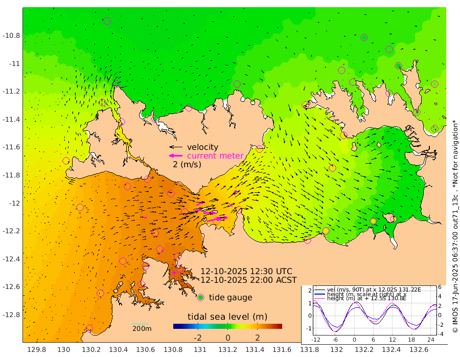 230cm/s 78T +4cm/s rms + 6cm/s 51T. Darwin_C1 52m 159cm/s 93T +4cm/s rms + 7cm/s -161T. Darwin_CW1 22m 122cm/s 72T +4cm/s rms + 8cm/s 61T. Darwin_CW2 34m 114cm/s 47T +3cm/s rms + 9cm/s 98T. Darwin_CW3 22m 187cm/s 89T +5cm/s rms + 7cm/s 88T. Darwin_C3 56m 121cm/s 66T +2cm/s rms + 9cm/s -126T. Darwin_CTbW 22m 36cm/s 78T +1cm/s rms + 1cm/s -47T. DARBGF 30m 26cm/s 99T +4cm/s rms + 3cm/s 80T. NRSDAR 19m 5cm Goodrich Bank 192cm Point Jenny 190cm Native Point 204cm Fish Reef 215cm Tapa Bay 107cm Point Fawcett (Offshore) 228cm Burge Point 214cm Munkunuwa 159cm Beagle A 230cm Parsons Bank 212cm Fenton Patches 221cm Hancox Shoal Area 233cm Nightcliff 245cm Darwin 219cm Charles Point Patches 173cm Glyde Point 131cm Chambers Bay 129cm Point Stuart 148cm Cape Hotham 128cm Christine Reef 140cm West Alligator Head 116cm East Field Island 124cm Two Hills Bay 108cm Camp Point 215cm Medina Inlet South 85cm South Barlow Point 56cm St. Asaph Bay 9cm Cape Van Dieman 15cm Snake Bay 15cm Cache Point 32cm Point Jahleel (Off) 77cm Cape Don 34cm Port Essington 38cm Smith Point - West 30cm NW Peacock Island 18cm North Of Jones Shoal 7cm Peacock Island 37cm Point David 36cm D'urville Point 38cm Copeland Island 39cm One Tree Point