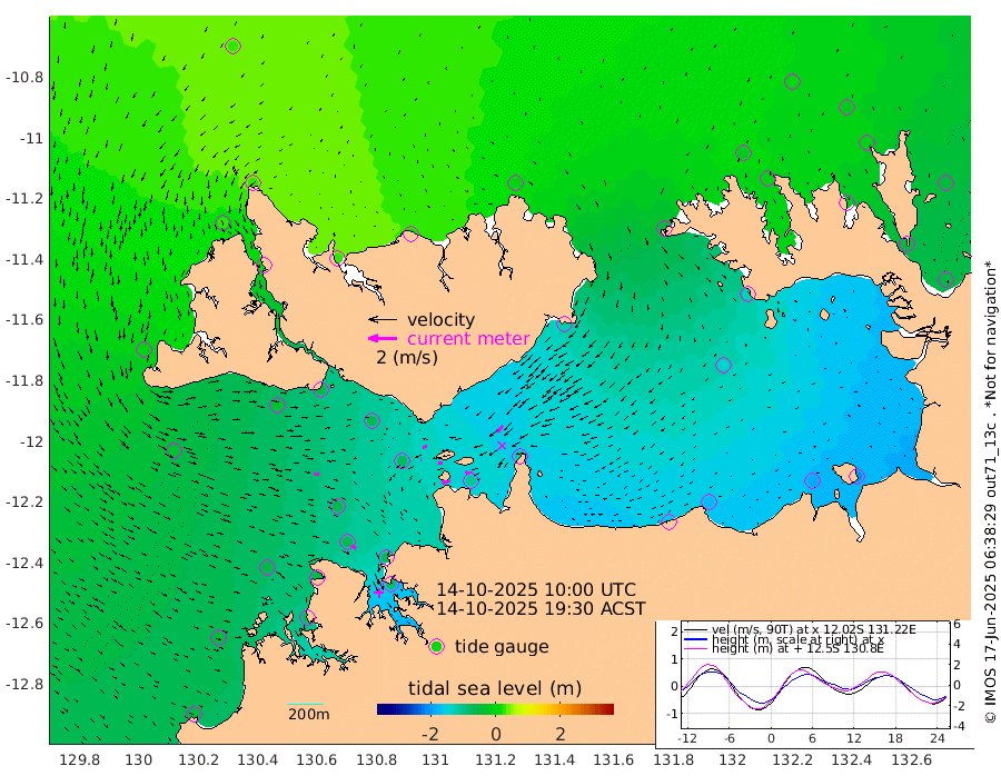 61cm/s -102T +4cm/s rms + 6cm/s 51T. Darwin_C1 52m 47cm/s -91T +4cm/s rms + 7cm/s -161T. Darwin_CW1 22m 6cm/s -98T +4cm/s rms + 8cm/s 61T. Darwin_CW2 34m 62cm/s -141T +3cm/s rms + 9cm/s 98T. Darwin_CW3 22m 31cm/s -86T +5cm/s rms + 7cm/s 88T. Darwin_C3 56m 31cm/s -115T +2cm/s rms + 9cm/s -126T. Darwin_CTbW 22m 33cm/s 98T +1cm/s rms + 1cm/s -47T. DARBGF 30m 39cm/s 127T +4cm/s rms + 3cm/s 80T. NRSDAR 19m 25cm Goodrich Bank -47cm Point Jenny -43cm Native Point -49cm Fish Reef -54cm Tapa Bay -1cm Point Fawcett (Offshore) -68cm Burge Point -23cm Munkunuwa -30cm Beagle A -63cm Parsons Bank -62cm Fenton Patches -77cm Hancox Shoal Area -70cm Nightcliff -80cm Darwin -64cm Charles Point Patches -110cm Glyde Point -158cm Chambers Bay -172cm Point Stuart -120cm Cape Hotham -145cm Christine Reef -189cm West Alligator Head -211cm East Field Island -129cm Two Hills Bay -124cm Camp Point -45cm Medina Inlet South 18cm South Barlow Point 25cm St. Asaph Bay 26cm Cape Van Dieman 25cm Snake Bay 12cm Cache Point -2cm Point Jahleel (Off) -50cm Cape Don -12cm Port Essington -8cm Smith Point - West -14cm NW Peacock Island 0cm North Of Jones Shoal -2cm Peacock Island -44cm Point David -15cm D'urville Point -47cm Copeland Island -41cm One Tree Point