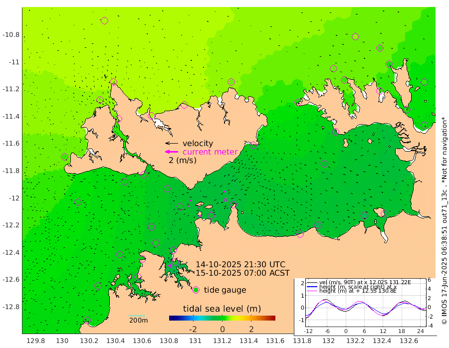 56cm/s -101T +4cm/s rms + 6cm/s 51T. Darwin_C1 52m 21cm/s -89T +4cm/s rms + 7cm/s -161T. Darwin_CW1 22m 13cm/s -112T +4cm/s rms + 8cm/s 61T. Darwin_CW2 34m 32cm/s -134T +3cm/s rms + 9cm/s 98T. Darwin_CW3 22m 12cm/s -90T +5cm/s rms + 7cm/s 88T. Darwin_C3 56m 34cm/s -116T +2cm/s rms + 9cm/s -126T. Darwin_CTbW 22m 5cm/s 102T +1cm/s rms + 1cm/s -47T. DARBGF 30m 5cm/s 155T +4cm/s rms + 3cm/s 80T. NRSDAR 19m 58cm Goodrich Bank -2cm Point Jenny 1cm Native Point -8cm Fish Reef -3cm Tapa Bay 34cm Point Fawcett (Offshore) -8cm Burge Point -4cm Munkunuwa 5cm Beagle A -14cm Parsons Bank -14cm Fenton Patches -16cm Hancox Shoal Area -16cm Nightcliff -9cm Darwin 9cm Charles Point Patches -24cm Glyde Point -47cm Chambers Bay -58cm Point Stuart -32cm Cape Hotham -41cm Christine Reef -69cm West Alligator Head -73cm East Field Island -36cm Two Hills Bay -17cm Camp Point 2cm Medina Inlet South 43cm South Barlow Point 49cm St. Asaph Bay 57cm Cape Van Dieman 60cm Snake Bay 51cm Cache Point 38cm Point Jahleel (Off) 14cm Cape Don 37cm Port Essington 31cm Smith Point - West 33cm NW Peacock Island 47cm North Of Jones Shoal 15cm Peacock Island 23cm Point David 30cm D'urville Point 18cm Copeland Island 27cm One Tree Point
