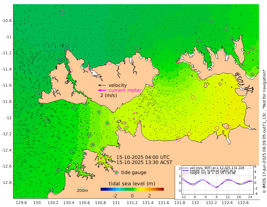 30cm/s 80T +4cm/s rms + 6cm/s 51T. Darwin_C1 52m 6cm/s 68T +4cm/s rms + 7cm/s -161T. Darwin_CW1 22m 4cm/s -92T +4cm/s rms + 8cm/s 61T. Darwin_CW2 34m 27cm/s 40T +3cm/s rms + 9cm/s 98T. Darwin_CW3 22m 9cm/s -98T +5cm/s rms + 7cm/s 88T. Darwin_C3 56m 18cm/s 62T +2cm/s rms + 9cm/s -126T. Darwin_CTbW 22m 22cm/s -88T +1cm/s rms + 1cm/s -47T. DARBGF 30m 26cm/s -55T +4cm/s rms + 3cm/s 80T. NRSDAR 19m -59cm Goodrich Bank -9cm Point Jenny -14cm Native Point -3cm Fish Reef -6cm Tapa Bay -44cm Point Fawcett (Offshore) 2cm Burge Point -20cm Munkunuwa -21cm Beagle A 12cm Parsons Bank 3cm Fenton Patches 19cm Hancox Shoal Area 8cm Nightcliff 12cm Darwin -4cm Charles Point Patches 42cm Glyde Point 84cm Chambers Bay 98cm Point Stuart 58cm Cape Hotham 70cm Christine Reef 108cm West Alligator Head 121cm East Field Island 66cm Two Hills Bay 52cm Camp Point -13cm Medina Inlet South -54cm South Barlow Point -61cm St. Asaph Bay -58cm Cape Van Dieman -58cm Snake Bay -47cm Cache Point -33cm Point Jahleel (Off) 6cm Cape Don -17cm Port Essington -16cm Smith Point - West -11cm NW Peacock Island -30cm North Of Jones Shoal -7cm Peacock Island 23cm Point David -7cm D'urville Point 29cm Copeland Island 15cm One Tree Point