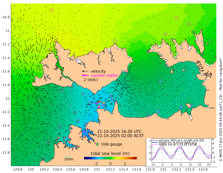 89cm/s -100T +4cm/s rms + 6cm/s 51T. Darwin_C1 52m 87cm/s -92T +4cm/s rms + 7cm/s -161T. Darwin_CW1 22m 48cm/s -106T +4cm/s rms + 8cm/s 61T. Darwin_CW2 34m 66cm/s -136T +3cm/s rms + 9cm/s 98T. Darwin_CW3 22m 103cm/s -91T +5cm/s rms + 7cm/s 88T. Darwin_C3 56m 32cm/s -116T +2cm/s rms + 9cm/s -126T. Darwin_CTbW 22m 26cm/s 107T +1cm/s rms + 1cm/s -47T. DARBGF 30m 33cm/s 138T +4cm/s rms + 3cm/s 80T. NRSDAR 19m 81cm Goodrich Bank -47cm Point Jenny -44cm Native Point -65cm Fish Reef -76cm Tapa Bay 27cm Point Fawcett (Offshore) -87cm Burge Point -72cm Munkunuwa -13cm Beagle A -100cm Parsons Bank -74cm Fenton Patches -106cm Hancox Shoal Area -94cm Nightcliff -121cm Darwin -90cm Charles Point Patches -109cm Glyde Point -128cm Chambers Bay -142cm Point Stuart -107cm Cape Hotham -105cm Christine Reef -160cm West Alligator Head -167cm East Field Island -99cm Two Hills Bay -91cm Camp Point -75cm Medina Inlet South 41cm South Barlow Point 60cm St. Asaph Bay 81cm Cape Van Dieman 77cm Snake Bay 75cm Cache Point 49cm Point Jahleel (Off) -5cm Cape Don 38cm Port Essington 42cm Smith Point - West 42cm NW Peacock Island 59cm North Of Jones Shoal 19cm Peacock Island 9cm Point David 39cm D'urville Point 3cm Copeland Island 14cm One Tree Point
