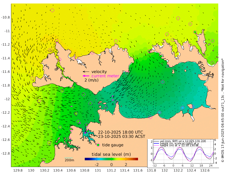 17cm/s -101T +4cm/s rms + 6cm/s 51T. Darwin_C1 52m 28cm/s -87T +4cm/s rms + 7cm/s -161T. Darwin_CW1 22m 1cm/s -104T +4cm/s rms + 8cm/s 61T. Darwin_CW2 34m 46cm/s -140T +3cm/s rms + 9cm/s 98T. Darwin_CW3 22m 39cm/s -89T +5cm/s rms + 7cm/s 88T. Darwin_C3 56m 16cm/s 60T +2cm/s rms + 9cm/s -126T. Darwin_CTbW 22m 56cm/s 97T +1cm/s rms + 1cm/s -47T. DARBGF 30m 60cm/s 129T +4cm/s rms + 3cm/s 80T. NRSDAR 19m 98cm Goodrich Bank 54cm Point Jenny 58cm Native Point 42cm Fish Reef 38cm Tapa Bay 93cm Point Fawcett (Offshore) 31cm Burge Point 41cm Munkunuwa 77cm Beagle A 15cm Parsons Bank 38cm Fenton Patches 1cm Hancox Shoal Area 22cm Nightcliff 3cm Darwin 28cm Charles Point Patches -37cm Glyde Point -103cm Chambers Bay -126cm Point Stuart -57cm Cape Hotham -85cm Christine Reef -150cm West Alligator Head -175cm East Field Island -72cm Two Hills Bay -58cm Camp Point 38cm Medina Inlet South 102cm South Barlow Point 104cm St. Asaph Bay 103cm Cape Van Dieman 104cm Snake Bay 95cm Cache Point 73cm Point Jahleel (Off) 30cm Cape Don 66cm Port Essington 70cm Smith Point - West 67cm NW Peacock Island 78cm North Of Jones Shoal 26cm Peacock Island 41cm Point David 68cm D'urville Point 35cm Copeland Island 44cm One Tree Point