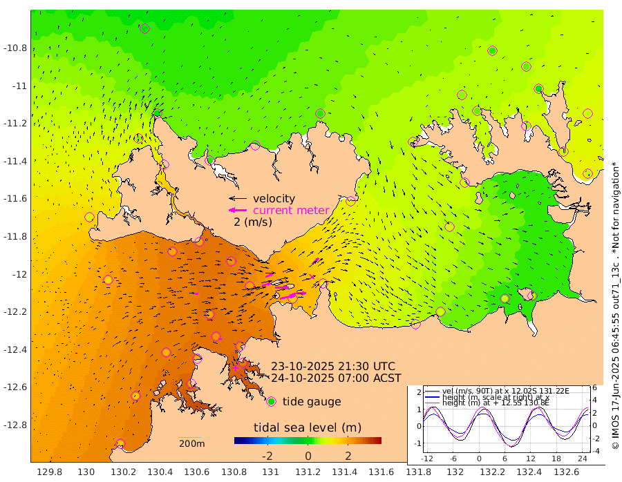 174cm/s 77T +4cm/s rms + 6cm/s 51T. Darwin_C1 52m 138cm/s 89T +4cm/s rms + 7cm/s -161T. Darwin_CW1 22m 99cm/s 74T +4cm/s rms + 8cm/s 61T. Darwin_CW2 34m 94cm/s 44T +3cm/s rms + 9cm/s 98T. Darwin_CW3 22m 155cm/s 89T +5cm/s rms + 7cm/s 88T. Darwin_C3 56m 90cm/s 65T +2cm/s rms + 9cm/s -126T. Darwin_CTbW 22m 37cm/s 83T +1cm/s rms + 1cm/s -47T. DARBGF 30m 35cm/s 105T +4cm/s rms + 3cm/s 80T. NRSDAR 19m 6cm Goodrich Bank 169cm Point Jenny 169cm Native Point 186cm Fish Reef 196cm Tapa Bay 90cm Point Fawcett (Offshore) 213cm Burge Point 192cm Munkunuwa 145cm Beagle A 218cm Parsons Bank 200cm Fenton Patches 207cm Hancox Shoal Area 221cm Nightcliff 241cm Darwin 218cm Charles Point Patches 156cm Glyde Point 91cm Chambers Bay 82cm Point Stuart 124cm Cape Hotham 81cm Christine Reef 81cm West Alligator Head 56cm East Field Island 89cm Two Hills Bay 93cm Camp Point 202cm Medina Inlet South 88cm South Barlow Point 49cm St. Asaph Bay 12cm Cape Van Dieman 28cm Snake Bay 12cm Cache Point 29cm Point Jahleel (Off) 73cm Cape Don 47cm Port Essington 45cm Smith Point - West 43cm NW Peacock Island 29cm North Of Jones Shoal 13cm Peacock Island 70cm Point David 52cm D'urville Point 72cm Copeland Island 69cm One Tree Point