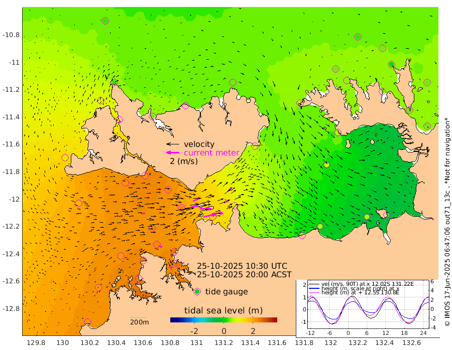 206cm/s 77T +4cm/s rms + 6cm/s 51T. Darwin_C1 52m 150cm/s 91T +4cm/s rms + 7cm/s -161T. Darwin_CW1 22m 122cm/s 74T +4cm/s rms + 8cm/s 61T. Darwin_CW2 34m 100cm/s 47T +3cm/s rms + 9cm/s 98T. Darwin_CW3 22m 179cm/s 89T +5cm/s rms + 7cm/s 88T. Darwin_C3 56m 110cm/s 65T +2cm/s rms + 9cm/s -126T. Darwin_CTbW 22m 54cm/s 84T +1cm/s rms + 1cm/s -47T. DARBGF 30m 51cm/s 109T +4cm/s rms + 3cm/s 80T. NRSDAR 19m 27cm Goodrich Bank 205cm Point Jenny 205cm Native Point 209cm Fish Reef 231cm Tapa Bay 123cm Point Fawcett (Offshore) 231cm Burge Point 225cm Munkunuwa 178cm Beagle A 231cm Parsons Bank 225cm Fenton Patches 227cm Hancox Shoal Area 245cm Nightcliff 250cm Darwin 235cm Charles Point Patches 153cm Glyde Point 84cm Chambers Bay 61cm Point Stuart 113cm Cape Hotham 84cm Christine Reef 62cm West Alligator Head 30cm East Field Island 76cm Two Hills Bay 79cm Camp Point 225cm Medina Inlet South 110cm South Barlow Point 82cm St. Asaph Bay 31cm Cape Van Dieman 37cm Snake Bay 30cm Cache Point 42cm Point Jahleel (Off) 68cm Cape Don 42cm Port Essington 48cm Smith Point - West 38cm NW Peacock Island 29cm North Of Jones Shoal 10cm Peacock Island 37cm Point David 45cm D'urville Point 37cm Copeland Island 37cm One Tree Point