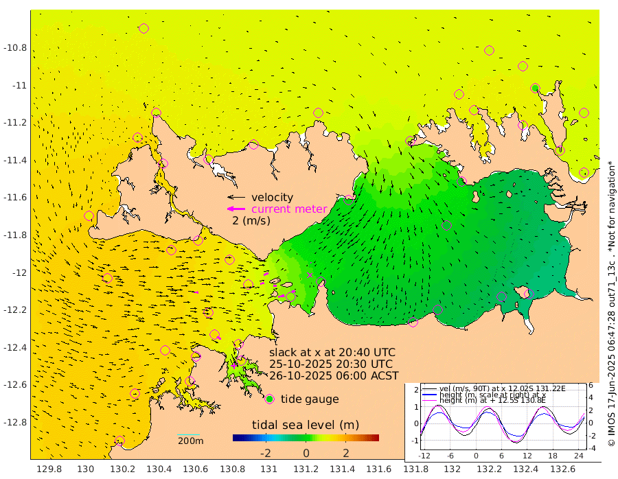 71cm/s 79T +4cm/s rms + 6cm/s 51T. Darwin_C1 52m 40cm/s 83T +4cm/s rms + 7cm/s -161T. Darwin_CW1 22m 41cm/s 75T +4cm/s rms + 8cm/s 61T. Darwin_CW2 34m 6cm/s 130T +3cm/s rms + 9cm/s 98T. Darwin_CW3 22m 37cm/s 87T +5cm/s rms + 7cm/s 88T. Darwin_C3 56m 57cm/s 62T +2cm/s rms + 9cm/s -126T. Darwin_CTbW 22m 53cm/s 92T +1cm/s rms + 1cm/s -47T. DARBGF 30m 51cm/s 123T +4cm/s rms + 3cm/s 80T. NRSDAR 19m 79cm Goodrich Bank 127cm Point Jenny 131cm Native Point 123cm Fish Reef 135cm Tapa Bay 112cm Point Fawcett (Offshore) 136cm Burge Point 136cm Munkunuwa 126cm Beagle A 130cm Parsons Bank 129cm Fenton Patches 113cm Hancox Shoal Area 127cm Nightcliff 131cm Darwin 138cm Charles Point Patches 55cm Glyde Point -34cm Chambers Bay -52cm Point Stuart 23cm Cape Hotham -24cm Christine Reef -70cm West Alligator Head -103cm East Field Island -9cm Two Hills Bay 7cm Camp Point 134cm Medina Inlet South 120cm South Barlow Point 102cm St. Asaph Bay 86cm Cape Van Dieman 94cm Snake Bay 76cm Cache Point 70cm Point Jahleel (Off) 57cm Cape Don 73cm Port Essington 73cm Smith Point - West 72cm NW Peacock Island 68cm North Of Jones Shoal 25cm Peacock Island 74cm Point David 76cm D'urville Point 69cm Copeland Island 69cm One Tree Point