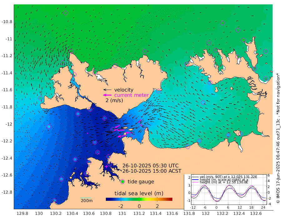 227cm/s -102T +4cm/s rms + 6cm/s 51T. Darwin_C1 52m 172cm/s -90T +4cm/s rms + 7cm/s -161T. Darwin_CW1 22m 108cm/s -106T +4cm/s rms + 8cm/s 61T. Darwin_CW2 34m 110cm/s -134T +3cm/s rms + 9cm/s 98T. Darwin_CW3 22m 171cm/s -90T +5cm/s rms + 7cm/s 88T. Darwin_C3 56m 132cm/s -115T +2cm/s rms + 9cm/s -126T. Darwin_CTbW 22m 22cm/s -109T +1cm/s rms + 1cm/s -47T. DARBGF 30m 12cm/s -119T +4cm/s rms + 3cm/s 80T. NRSDAR 19m -25cm Goodrich Bank -197cm Point Jenny -198cm Native Point -207cm Fish Reef -231cm Tapa Bay -110cm Point Fawcett (Offshore) -239cm Burge Point -205cm Munkunuwa -166cm Beagle A -242cm Parsons Bank -228cm Fenton Patches -247cm Hancox Shoal Area -257cm Nightcliff -277cm Darwin -252cm Charles Point Patches -210cm Glyde Point -173cm Chambers Bay -170cm Point Stuart -183cm Cape Hotham -163cm Christine Reef -180cm West Alligator Head -169cm East Field Island -158cm Two Hills Bay -159cm Camp Point -227cm Medina Inlet South -96cm South Barlow Point -65cm St. Asaph Bay -27cm Cape Van Dieman -42cm Snake Bay -33cm Cache Point -54cm Point Jahleel (Off) -103cm Cape Don -62cm Port Essington -61cm Smith Point - West -60cm NW Peacock Island -45cm North Of Jones Shoal -17cm Peacock Island -85cm Point David -65cm D'urville Point -85cm Copeland Island -83cm One Tree Point