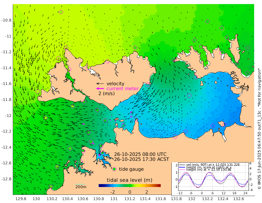 35cm/s -100T +4cm/s rms + 6cm/s 51T. Darwin_C1 52m 44cm/s -94T +4cm/s rms + 7cm/s -161T. Darwin_CW1 22m 14cm/s 67T +4cm/s rms + 8cm/s 61T. Darwin_CW2 34m 60cm/s -142T +3cm/s rms + 9cm/s 98T. Darwin_CW3 22m 23cm/s -84T +5cm/s rms + 7cm/s 88T. Darwin_C3 56m 8cm/s -112T +2cm/s rms + 9cm/s -126T. Darwin_CTbW 22m 63cm/s 95T +1cm/s rms + 1cm/s -47T. DARBGF 30m 71cm/s 126T +4cm/s rms + 3cm/s 80T. NRSDAR 19m 55cm Goodrich Bank 36cm Point Jenny 38cm Native Point 23cm Fish Reef 21cm Tapa Bay 57cm Point Fawcett (Offshore) 14cm Burge Point 48cm Munkunuwa 50cm Beagle A 4cm Parsons Bank 18cm Fenton Patches -16cm Hancox Shoal Area -4cm Nightcliff -22cm Darwin 1cm Charles Point Patches -79cm Glyde Point -155cm Chambers Bay -184cm Point Stuart -104cm Cape Hotham -132cm Christine Reef -207cm West Alligator Head -244cm East Field Island -127cm Two Hills Bay -115cm Camp Point 20cm Medina Inlet South 69cm South Barlow Point 71cm St. Asaph Bay 60cm Cape Van Dieman 52cm Snake Bay 46cm Cache Point 26cm Point Jahleel (Off) -21cm Cape Don 16cm Port Essington 23cm Smith Point - West 14cm NW Peacock Island 22cm North Of Jones Shoal 6cm Peacock Island -23cm Point David 16cm D'urville Point -26cm Copeland Island -22cm One Tree Point