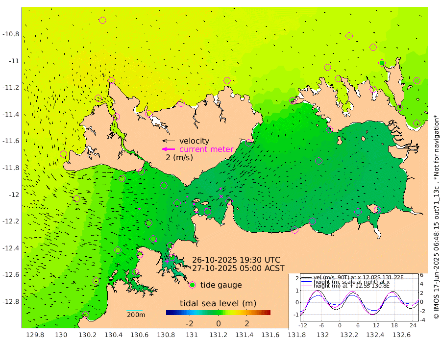 52cm/s -100T +4cm/s rms + 6cm/s 51T. Darwin_C1 52m 40cm/s -93T +4cm/s rms + 7cm/s -161T. Darwin_CW1 22m 8cm/s -107T +4cm/s rms + 8cm/s 61T. Darwin_CW2 34m 41cm/s -137T +3cm/s rms + 9cm/s 98T. Darwin_CW3 22m 29cm/s -90T +5cm/s rms + 7cm/s 88T. Darwin_C3 56m 26cm/s -115T +2cm/s rms + 9cm/s -126T. Darwin_CTbW 22m 32cm/s 97T +1cm/s rms + 1cm/s -47T. DARBGF 30m 34cm/s 132T +4cm/s rms + 3cm/s 80T. NRSDAR 19m 89cm Goodrich Bank 42cm Point Jenny 46cm Native Point 35cm Fish Reef 34cm Tapa Bay 76cm Point Fawcett (Offshore) 30cm Burge Point 36cm Munkunuwa 58cm Beagle A 15cm Parsons Bank 29cm Fenton Patches 3cm Hancox Shoal Area 6cm Nightcliff 10cm Darwin 33cm Charles Point Patches -19cm Glyde Point -74cm Chambers Bay -83cm Point Stuart -33cm Cape Hotham -63cm Christine Reef -101cm West Alligator Head -117cm East Field Island -47cm Two Hills Bay -31cm Camp Point 33cm Medina Inlet South 82cm South Barlow Point 86cm St. Asaph Bay 92cm Cape Van Dieman 92cm Snake Bay 84cm Cache Point 65cm Point Jahleel (Off) 29cm Cape Don 61cm Port Essington 57cm Smith Point - West 58cm NW Peacock Island 63cm North Of Jones Shoal 21cm Peacock Island 43cm Point David 56cm D'urville Point 36cm Copeland Island 41cm One Tree Point