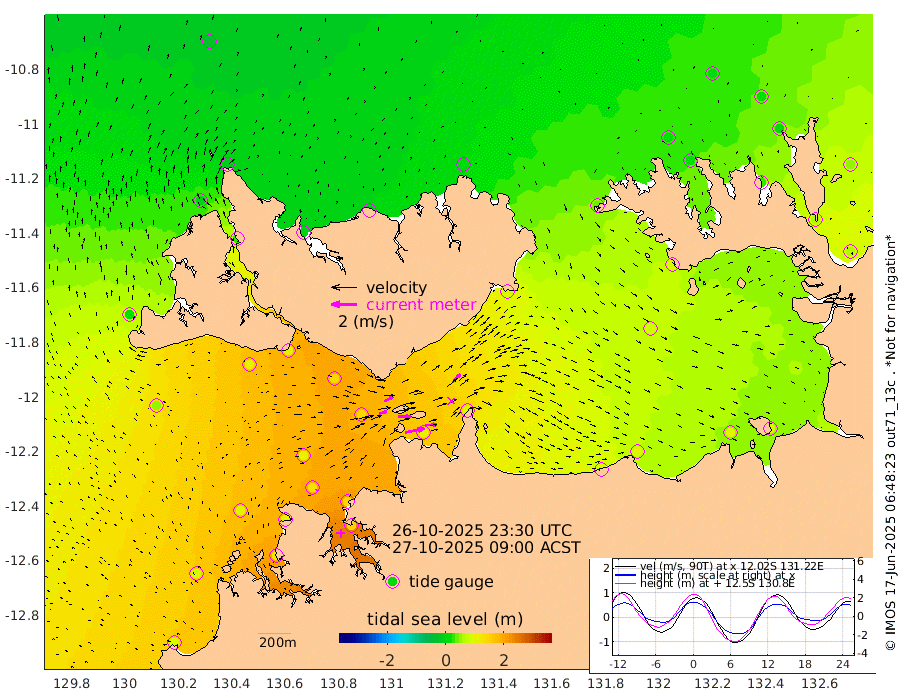 151cm/s 78T +4cm/s rms + 6cm/s 51T. Darwin_C1 52m 95cm/s 89T +4cm/s rms + 7cm/s -161T. Darwin_CW1 22m 60cm/s 74T +4cm/s rms + 8cm/s 61T. Darwin_CW2 34m 89cm/s 44T +3cm/s rms + 9cm/s 98T. Darwin_CW3 22m 97cm/s 89T +5cm/s rms + 7cm/s 88T. Darwin_C3 56m 78cm/s 65T +2cm/s rms + 9cm/s -126T. Darwin_CTbW 22m 6cm/s 48T +1cm/s rms + 1cm/s -47T. DARBGF 30m 9cm/s 37T +4cm/s rms + 3cm/s 80T. NRSDAR 19m -26cm Goodrich Bank 84cm Point Jenny 84cm Native Point 91cm Fish Reef 111cm Tapa Bay 20cm Point Fawcett (Offshore) 117cm Burge Point 103cm Munkunuwa 56cm Beagle A 137cm Parsons Bank 106cm Fenton Patches 137cm Hancox Shoal Area 137cm Nightcliff 151cm Darwin 125cm Charles Point Patches 111cm Glyde Point 88cm Chambers Bay 90cm Point Stuart 99cm Cape Hotham 79cm Christine Reef 95cm West Alligator Head 84cm East Field Island 82cm Two Hills Bay 80cm Camp Point 110cm Medina Inlet South 23cm South Barlow Point -6cm St. Asaph Bay -22cm Cape Van Dieman -7cm Snake Bay -21cm Cache Point 0cm Point Jahleel (Off) 43cm Cape Don 18cm Port Essington 17cm Smith Point - West 21cm NW Peacock Island 3cm North Of Jones Shoal 4cm Peacock Island 63cm Point David 28cm D'urville Point 66cm Copeland Island 55cm One Tree Point