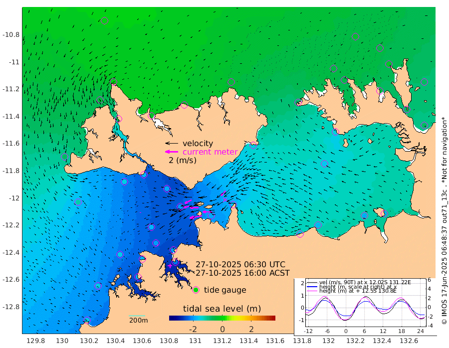 199cm/s -101T +4cm/s rms + 6cm/s 51T. Darwin_C1 52m 143cm/s -91T +4cm/s rms + 7cm/s -161T. Darwin_CW1 22m 78cm/s -106T +4cm/s rms + 8cm/s 61T. Darwin_CW2 34m 102cm/s -135T +3cm/s rms + 9cm/s 98T. Darwin_CW3 22m 132cm/s -90T +5cm/s rms + 7cm/s 88T. Darwin_C3 56m 117cm/s -115T +2cm/s rms + 9cm/s -126T. Darwin_CTbW 22m 7cm/s -158T +1cm/s rms + 1cm/s -47T. DARBGF 30m 14cm/s 167T +4cm/s rms + 3cm/s 80T. NRSDAR 19m -10cm Goodrich Bank -148cm Point Jenny -148cm Native Point -154cm Fish Reef -178cm Tapa Bay -73cm Point Fawcett (Offshore) -182cm Burge Point -148cm Munkunuwa -119cm Beagle A -188cm Parsons Bank -174cm Fenton Patches -198cm Hancox Shoal Area -201cm Nightcliff -219cm Darwin -196cm Charles Point Patches -182cm Glyde Point -172cm Chambers Bay -173cm Point Stuart -165cm Cape Hotham -162cm Christine Reef -187cm West Alligator Head -186cm East Field Island -152cm Two Hills Bay -151cm Camp Point -171cm Medina Inlet South -60cm South Barlow Point -35cm St. Asaph Bay -10cm Cape Van Dieman -23cm Snake Bay -18cm Cache Point -38cm Point Jahleel (Off) -87cm Cape Don -47cm Port Essington -46cm Smith Point - West -47cm NW Peacock Island -31cm North Of Jones Shoal -13cm Peacock Island -75cm Point David -51cm D'urville Point -76cm Copeland Island -72cm One Tree Point