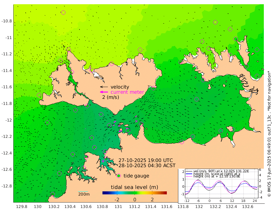 99cm/s -101T +4cm/s rms + 6cm/s 51T. Darwin_C1 52m 55cm/s -91T +4cm/s rms + 7cm/s -161T. Darwin_CW1 22m 34cm/s -107T +4cm/s rms + 8cm/s 61T. Darwin_CW2 34m 47cm/s -135T +3cm/s rms + 9cm/s 98T. Darwin_CW3 22m 48cm/s -90T +5cm/s rms + 7cm/s 88T. Darwin_C3 56m 59cm/s -115T +2cm/s rms + 9cm/s -126T. Darwin_CTbW 22m 4cm/s 123T +1cm/s rms + 1cm/s -47T. DARBGF 30m 8cm/s 174T +4cm/s rms + 3cm/s 80T. NRSDAR 19m 70cm Goodrich Bank -5cm Point Jenny -2cm Native Point -9cm Fish Reef -17cm Tapa Bay 42cm Point Fawcett (Offshore) -21cm Burge Point -21cm Munkunuwa 14cm Beagle A -39cm Parsons Bank -20cm Fenton Patches -43cm Hancox Shoal Area -47cm Nightcliff -38cm Darwin -14cm Charles Point Patches -33cm Glyde Point -52cm Chambers Bay -52cm Point Stuart -36cm Cape Hotham -47cm Christine Reef -63cm West Alligator Head -62cm East Field Island -35cm Two Hills Bay -22cm Camp Point -17cm Medina Inlet South 41cm South Barlow Point 55cm St. Asaph Bay 69cm Cape Van Dieman 65cm Snake Bay 66cm Cache Point 47cm Point Jahleel (Off) 14cm Cape Don 41cm Port Essington 35cm Smith Point - West 36cm NW Peacock Island 45cm North Of Jones Shoal 14cm Peacock Island 18cm Point David 32cm D'urville Point 12cm Copeland Island 20cm One Tree Point