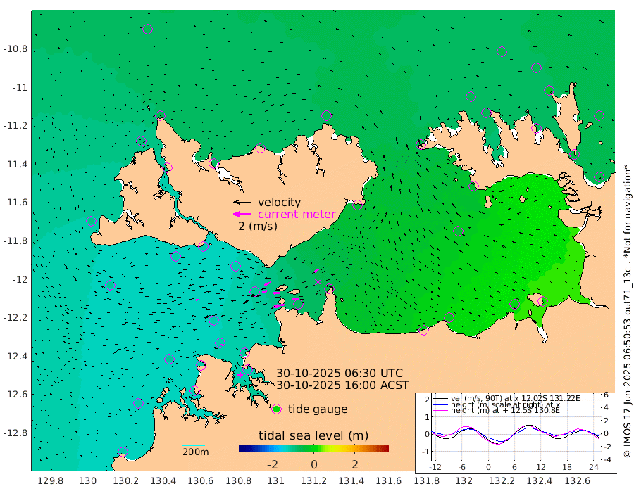 131cm/s -102T +4cm/s rms + 6cm/s 51T. Darwin_C1 52m 81cm/s -89T +4cm/s rms + 7cm/s -161T. Darwin_CW1 22m 53cm/s -107T +4cm/s rms + 8cm/s 61T. Darwin_CW2 34m 53cm/s -125T +3cm/s rms + 9cm/s 98T. Darwin_CW3 22m 73cm/s -91T +5cm/s rms + 7cm/s 88T. Darwin_C3 56m 73cm/s -116T +2cm/s rms + 9cm/s -126T. Darwin_CTbW 22m 28cm/s -95T +1cm/s rms + 1cm/s -47T. DARBGF 30m 20cm/s -72T +4cm/s rms + 3cm/s 80T. NRSDAR 19m -65cm Goodrich Bank -115cm Point Jenny -118cm Native Point -108cm Fish Reef -119cm Tapa Bay -92cm Point Fawcett (Offshore) -122cm Burge Point -116cm Munkunuwa -106cm Beagle A -119cm Parsons Bank -113cm Fenton Patches -108cm Hancox Shoal Area -111cm Nightcliff -121cm Darwin -123cm Charles Point Patches -72cm Glyde Point -20cm Chambers Bay -12cm Point Stuart -46cm Cape Hotham -36cm Christine Reef -7cm West Alligator Head 14cm East Field Island -34cm Two Hills Bay -37cm Camp Point -118cm Medina Inlet South -94cm South Barlow Point -80cm St. Asaph Bay -67cm Cape Van Dieman -70cm Snake Bay -65cm Cache Point -61cm Point Jahleel (Off) -64cm Cape Don -64cm Port Essington -66cm Smith Point - West -63cm NW Peacock Island -56cm North Of Jones Shoal -19cm Peacock Island -53cm Point David -65cm D'urville Point -49cm Copeland Island -55cm One Tree Point