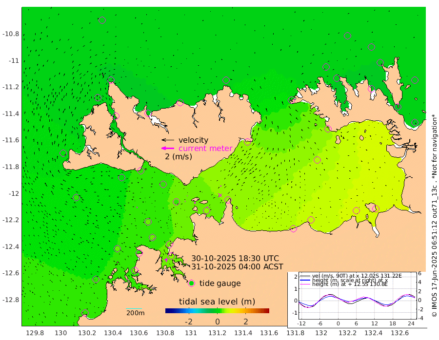 14cm/s -101T +4cm/s rms + 6cm/s 51T. Darwin_C1 52m 10cm/s 99T +4cm/s rms + 7cm/s -161T. Darwin_CW1 22m 6cm/s 82T +4cm/s rms + 8cm/s 61T. Darwin_CW2 34m 10cm/s 13T +3cm/s rms + 9cm/s 98T. Darwin_CW3 22m 21cm/s 92T +5cm/s rms + 7cm/s 88T. Darwin_C3 56m 5cm/s -130T +2cm/s rms + 9cm/s -126T. Darwin_CTbW 22m 12cm/s -77T +1cm/s rms + 1cm/s -47T. DARBGF 30m 13cm/s -58T +4cm/s rms + 3cm/s 80T. NRSDAR 19m -1cm Goodrich Bank 31cm Point Jenny 30cm Native Point 34cm Fish Reef 33cm Tapa Bay 14cm Point Fawcett (Offshore) 42cm Burge Point 16cm Munkunuwa 30cm Beagle A 23cm Parsons Bank 42cm Fenton Patches 33cm Hancox Shoal Area 40cm Nightcliff 46cm Darwin 44cm Charles Point Patches 54cm Glyde Point 77cm Chambers Bay 74cm Point Stuart 50cm Cape Hotham 67cm Christine Reef 83cm West Alligator Head 100cm East Field Island 52cm Two Hills Bay 64cm Camp Point 34cm Medina Inlet South 2cm South Barlow Point 3cm St. Asaph Bay -4cm Cape Van Dieman -6cm Snake Bay 1cm Cache Point 2cm Point Jahleel (Off) 19cm Cape Don 0cm Port Essington -6cm Smith Point - West -7cm NW Peacock Island -2cm North Of Jones Shoal -1cm Peacock Island -11cm Point David -10cm D'urville Point -12cm Copeland Island -5cm One Tree Point