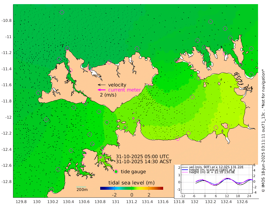 3cm/s 82T +4cm/s rms + 6cm/s 51T. Darwin_C1 52m 14cm/s -82T +4cm/s rms + 7cm/s -161T. Darwin_CW1 22m 1cm/s -70T +4cm/s rms + 8cm/s 61T. Darwin_CW2 34m 13cm/s 31T +3cm/s rms + 9cm/s 98T. Darwin_CW3 22m 8cm/s -92T +5cm/s rms + 7cm/s 88T. Darwin_C3 56m 4cm/s 61T +2cm/s rms + 9cm/s -126T. Darwin_CTbW 22m 10cm/s -89T +1cm/s rms + 1cm/s -47T. DARBGF 30m 11cm/s -52T +4cm/s rms + 3cm/s 80T. NRSDAR 19m -52cm Goodrich Bank -5cm Point Jenny -8cm Native Point -7cm Fish Reef 4cm Tapa Bay -36cm Point Fawcett (Offshore) -4cm Burge Point -14cm Munkunuwa -16cm Beagle A 4cm Parsons Bank 4cm Fenton Patches 20cm Hancox Shoal Area 20cm Nightcliff 7cm Darwin -4cm Charles Point Patches 26cm Glyde Point 61cm Chambers Bay 57cm Point Stuart 35cm Cape Hotham 44cm Christine Reef 65cm West Alligator Head 74cm East Field Island 35cm Two Hills Bay 33cm Camp Point -11cm Medina Inlet South -46cm South Barlow Point -48cm St. Asaph Bay -51cm Cape Van Dieman -51cm Snake Bay -46cm Cache Point -33cm Point Jahleel (Off) -10cm Cape Don -28cm Port Essington -25cm Smith Point - West -22cm NW Peacock Island -33cm North Of Jones Shoal -9cm Peacock Island 5cm Point David -19cm D'urville Point 10cm Copeland Island -4cm One Tree Point