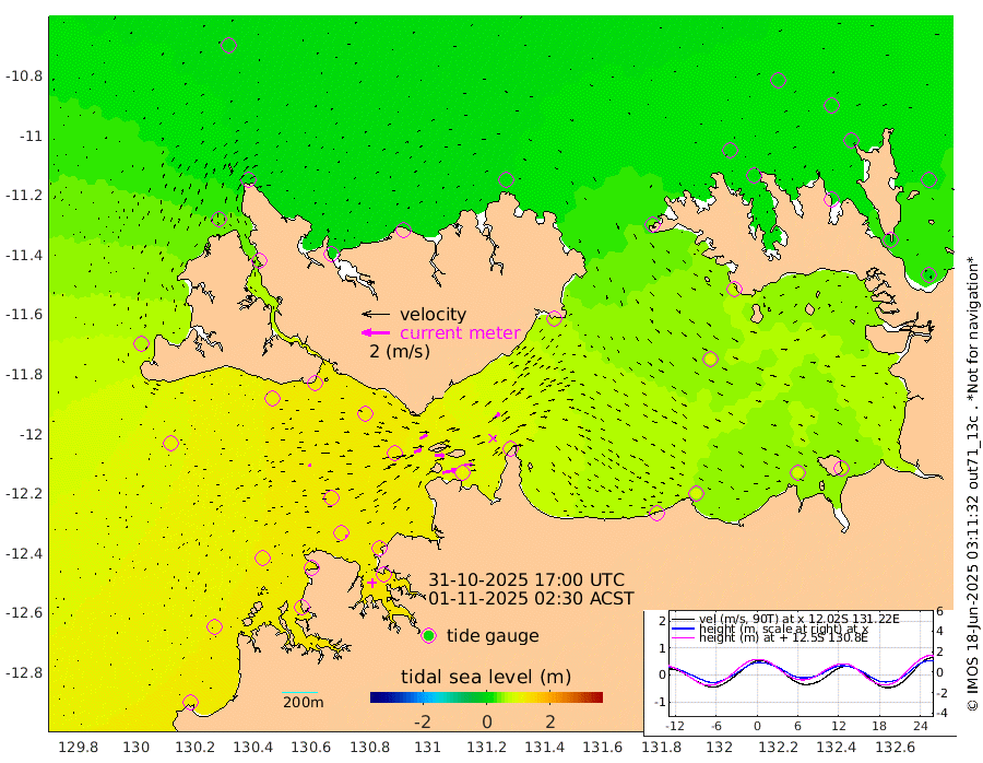 98cm/s 77T +4cm/s rms + 6cm/s 51T. Darwin_C1 52m 61cm/s 91T +4cm/s rms + 7cm/s -161T. Darwin_CW1 22m 53cm/s 72T +4cm/s rms + 8cm/s 61T. Darwin_CW2 34m 53cm/s 49T +3cm/s rms + 9cm/s 98T. Darwin_CW3 22m 71cm/s 89T +5cm/s rms + 7cm/s 88T. Darwin_C3 56m 59cm/s 65T +2cm/s rms + 9cm/s -126T. Darwin_CTbW 22m 18cm/s 79T +1cm/s rms + 1cm/s -47T. DARBGF 30m 13cm/s 101T +4cm/s rms + 3cm/s 80T. NRSDAR 19m 6cm Goodrich Bank 116cm Point Jenny 116cm Native Point 115cm Fish Reef 122cm Tapa Bay 61cm Point Fawcett (Offshore) 134cm Burge Point 108cm Munkunuwa 107cm Beagle A 117cm Parsons Bank 133cm Fenton Patches 118cm Hancox Shoal Area 140cm Nightcliff 131cm Darwin 119cm Charles Point Patches 102cm Glyde Point 92cm Chambers Bay 80cm Point Stuart 84cm Cape Hotham 90cm Christine Reef 87cm West Alligator Head 83cm East Field Island 72cm Two Hills Bay 77cm Camp Point 117cm Medina Inlet South 48cm South Barlow Point 34cm St. Asaph Bay 8cm Cape Van Dieman 10cm Snake Bay 12cm Cache Point 19cm Point Jahleel (Off) 45cm Cape Don 15cm Port Essington 17cm Smith Point - West 12cm NW Peacock Island 8cm North Of Jones Shoal 3cm Peacock Island 11cm Point David 14cm D'urville Point 11cm Copeland Island 14cm One Tree Point