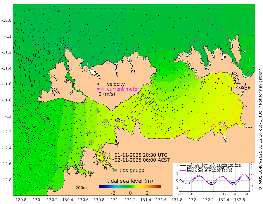 3cm/s 80T +4cm/s rms + 6cm/s 51T. Darwin_C1 52m 25cm/s 94T +4cm/s rms + 7cm/s -161T. Darwin_CW1 22m 15cm/s 68T +4cm/s rms + 8cm/s 61T. Darwin_CW2 34m 22cm/s 39T +3cm/s rms + 9cm/s 98T. Darwin_CW3 22m 37cm/s 91T +5cm/s rms + 7cm/s 88T. Darwin_C3 56m 3cm/s -135T +2cm/s rms + 9cm/s -126T. Darwin_CTbW 22m 30cm/s -81T +1cm/s rms + 1cm/s -47T. DARBGF 30m 37cm/s -54T +4cm/s rms + 3cm/s 80T. NRSDAR 19m -43cm Goodrich Bank 6cm Point Jenny 5cm Native Point 13cm Fish Reef 18cm Tapa Bay -30cm Point Fawcett (Offshore) 34cm Burge Point 9cm Munkunuwa -6cm Beagle A 26cm Parsons Bank 26cm Fenton Patches 35cm Hancox Shoal Area 36cm Nightcliff 51cm Darwin 36cm Charles Point Patches 58cm Glyde Point 84cm Chambers Bay 90cm Point Stuart 56cm Cape Hotham 73cm Christine Reef 102cm West Alligator Head 122cm East Field Island 56cm Two Hills Bay 68cm Camp Point 23cm Medina Inlet South -34cm South Barlow Point -41cm St. Asaph Bay -47cm Cape Van Dieman -44cm Snake Bay -44cm Cache Point -33cm Point Jahleel (Off) -1cm Cape Don -29cm Port Essington -38cm Smith Point - West -36cm NW Peacock Island -36cm North Of Jones Shoal -12cm Peacock Island -23cm Point David -38cm D'urville Point -22cm Copeland Island -20cm One Tree Point