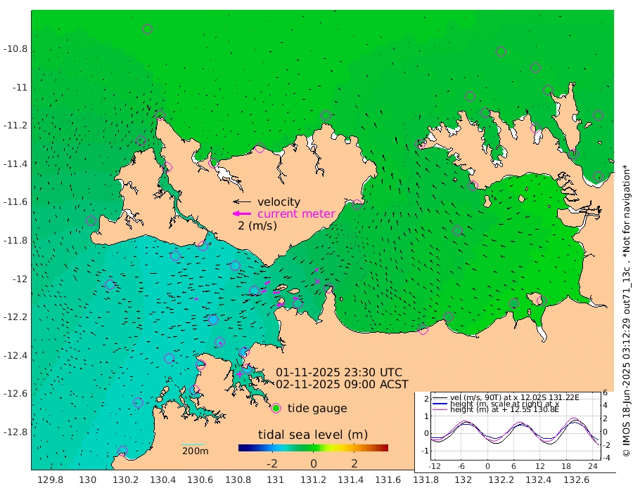 93cm/s -102T +4cm/s rms + 6cm/s 51T. Darwin_C1 52m 54cm/s -89T +4cm/s rms + 7cm/s -161T. Darwin_CW1 22m 62cm/s -108T +4cm/s rms + 8cm/s 61T. Darwin_CW2 34m 39cm/s -131T +3cm/s rms + 9cm/s 98T. Darwin_CW3 22m 73cm/s -91T +5cm/s rms + 7cm/s 88T. Darwin_C3 56m 59cm/s -115T +2cm/s rms + 9cm/s -126T. Darwin_CTbW 22m 37cm/s -92T +1cm/s rms + 1cm/s -47T. DARBGF 30m 32cm/s -63T +4cm/s rms + 3cm/s 80T. NRSDAR 19m -10cm Goodrich Bank -135cm Point Jenny -135cm Native Point -137cm Fish Reef -145cm Tapa Bay -76cm Point Fawcett (Offshore) -151cm Burge Point -134cm Munkunuwa -130cm Beagle A -141cm Parsons Bank -158cm Fenton Patches -140cm Hancox Shoal Area -163cm Nightcliff -147cm Darwin -134cm Charles Point Patches -101cm Glyde Point -70cm Chambers Bay -55cm Point Stuart -84cm Cape Hotham -66cm Christine Reef -57cm West Alligator Head -42cm East Field Island -59cm Two Hills Bay -59cm Camp Point -134cm Medina Inlet South -63cm South Barlow Point -47cm St. Asaph Bay -15cm Cape Van Dieman -18cm Snake Bay -18cm Cache Point -26cm Point Jahleel (Off) -43cm Cape Don -21cm Port Essington -29cm Smith Point - West -23cm NW Peacock Island -13cm North Of Jones Shoal -6cm Peacock Island -29cm Point David -29cm D'urville Point -30cm Copeland Island -25cm One Tree Point
