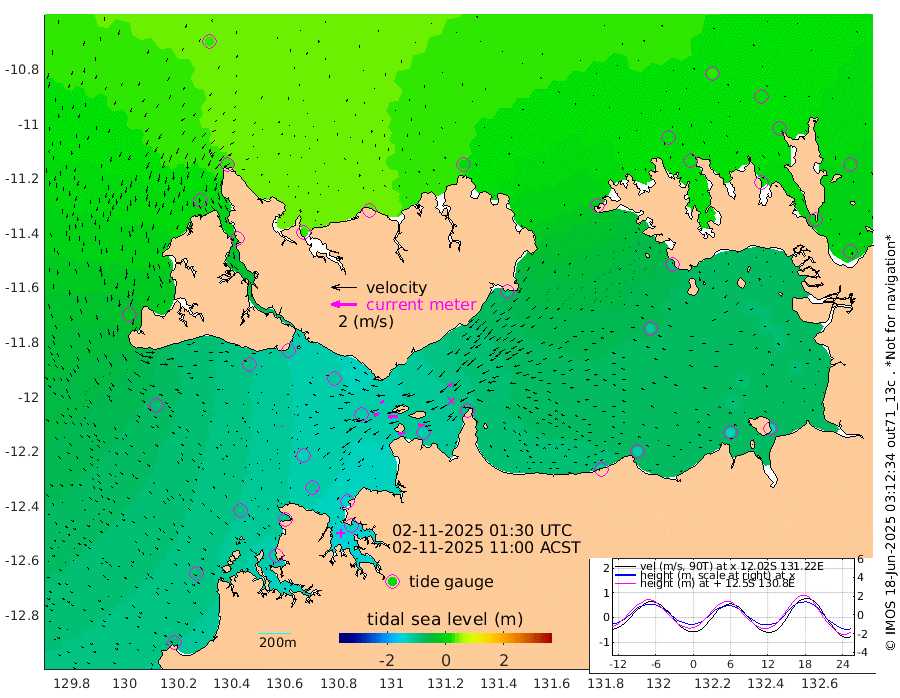 55cm/s -101T +4cm/s rms + 6cm/s 51T. Darwin_C1 52m 52cm/s -91T +4cm/s rms + 7cm/s -161T. Darwin_CW1 22m 43cm/s -107T +4cm/s rms + 8cm/s 61T. Darwin_CW2 34m 38cm/s -140T +3cm/s rms + 9cm/s 98T. Darwin_CW3 22m 70cm/s -90T +5cm/s rms + 7cm/s 88T. Darwin_C3 56m 29cm/s -115T +2cm/s rms + 9cm/s -126T. Darwin_CTbW 22m 6cm/s 154T +1cm/s rms + 1cm/s -47T. DARBGF 30m 8cm/s 153T +4cm/s rms + 3cm/s 80T. NRSDAR 19m 32cm Goodrich Bank -87cm Point Jenny -86cm Native Point -98cm Fish Reef -104cm Tapa Bay -21cm Point Fawcett (Offshore) -123cm Burge Point -91cm Munkunuwa -80cm Beagle A -109cm Parsons Bank -125cm Fenton Patches -117cm Hancox Shoal Area -136cm Nightcliff -133cm Darwin -109cm Charles Point Patches -113cm Glyde Point -115cm Chambers Bay -114cm Point Stuart -104cm Cape Hotham -103cm Christine Reef -127cm West Alligator Head -135cm East Field Island -87cm Two Hills Bay -94cm Camp Point -101cm Medina Inlet South -10cm South Barlow Point 5cm St. Asaph Bay 32cm Cape Van Dieman 27cm Snake Bay 28cm Cache Point 10cm Point Jahleel (Off) -22cm Cape Don 16cm Port Essington 16cm Smith Point - West 18cm NW Peacock Island 24cm North Of Jones Shoal 8cm Peacock Island 6cm Point David 17cm D'urville Point 4cm Copeland Island 7cm One Tree Point