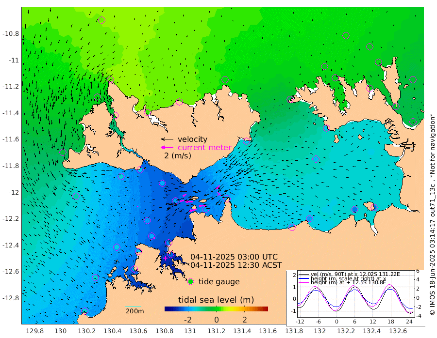 125cm/s -101T +4cm/s rms + 6cm/s 51T. Darwin_C1 52m 116cm/s -92T +4cm/s rms + 7cm/s -161T. Darwin_CW1 22m 65cm/s -106T +4cm/s rms + 8cm/s 61T. Darwin_CW2 34m 80cm/s -138T +3cm/s rms + 9cm/s 98T. Darwin_CW3 22m 121cm/s -90T +5cm/s rms + 7cm/s 88T. Darwin_C3 56m 63cm/s -116T +2cm/s rms + 9cm/s -126T. Darwin_CTbW 22m 18cm/s 118T +1cm/s rms + 1cm/s -47T. DARBGF 30m 27cm/s 140T +4cm/s rms + 3cm/s 80T. NRSDAR 19m 37cm Goodrich Bank -139cm Point Jenny -139cm Native Point -155cm Fish Reef -171cm Tapa Bay -34cm Point Fawcett (Offshore) -198cm Burge Point -145cm Munkunuwa -120cm Beagle A -189cm Parsons Bank -194cm Fenton Patches -200cm Hancox Shoal Area -211cm Nightcliff -226cm Darwin -189cm Charles Point Patches -194cm Glyde Point -193cm Chambers Bay -200cm Point Stuart -180cm Cape Hotham -180cm Christine Reef -219cm West Alligator Head -232cm East Field Island -158cm Two Hills Bay -166cm Camp Point -165cm Medina Inlet South -23cm South Barlow Point 6cm St. Asaph Bay 38cm Cape Van Dieman 27cm Snake Bay 30cm Cache Point 2cm Point Jahleel (Off) -57cm Cape Don -2cm Port Essington 0cm Smith Point - West -1cm NW Peacock Island 19cm North Of Jones Shoal 5cm Peacock Island -32cm Point David -5cm D'urville Point -36cm Copeland Island -27cm One Tree Point