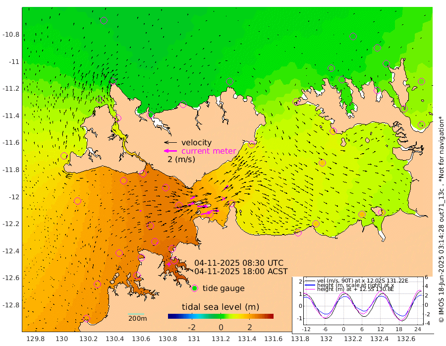 159cm/s 78T +4cm/s rms + 6cm/s 51T. Darwin_C1 52m 129cm/s 92T +4cm/s rms + 7cm/s -161T. Darwin_CW1 22m 104cm/s 72T +4cm/s rms + 8cm/s 61T. Darwin_CW2 34m 92cm/s 44T +3cm/s rms + 9cm/s 98T. Darwin_CW3 22m 166cm/s 89T +5cm/s rms + 7cm/s 88T. Darwin_C3 56m 77cm/s 66T +2cm/s rms + 9cm/s -126T. Darwin_CTbW 22m 24cm/s 70T +1cm/s rms + 1cm/s -47T. DARBGF 30m 14cm/s 88T +4cm/s rms + 3cm/s 80T. NRSDAR 19m -12cm Goodrich Bank 204cm Point Jenny 200cm Native Point 210cm Fish Reef 233cm Tapa Bay 91cm Point Fawcett (Offshore) 247cm Burge Point 207cm Munkunuwa 172cm Beagle A 239cm Parsons Bank 241cm Fenton Patches 248cm Hancox Shoal Area 260cm Nightcliff 267cm Darwin 242cm Charles Point Patches 200cm Glyde Point 174cm Chambers Bay 159cm Point Stuart 173cm Cape Hotham 163cm Christine Reef 171cm West Alligator Head 161cm East Field Island 139cm Two Hills Bay 146cm Camp Point 218cm Medina Inlet South 68cm South Barlow Point 40cm St. Asaph Bay -9cm Cape Van Dieman -6cm Snake Bay -1cm Cache Point 21cm Point Jahleel (Off) 75cm Cape Don 26cm Port Essington 29cm Smith Point - West 24cm NW Peacock Island 5cm North Of Jones Shoal 4cm Peacock Island 46cm Point David 31cm D'urville Point 50cm Copeland Island 41cm One Tree Point
