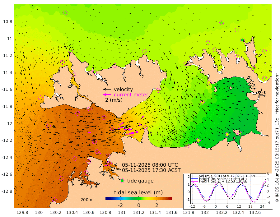 203cm/s 78T +4cm/s rms + 6cm/s 51T. Darwin_C1 52m 159cm/s 90T +4cm/s rms + 7cm/s -161T. Darwin_CW1 22m 131cm/s 74T +4cm/s rms + 8cm/s 61T. Darwin_CW2 34m 94cm/s 47T +3cm/s rms + 9cm/s 98T. Darwin_CW3 22m 192cm/s 89T +5cm/s rms + 7cm/s 88T. Darwin_C3 56m 108cm/s 65T +2cm/s rms + 9cm/s -126T. Darwin_CTbW 22m 71cm/s 86T +1cm/s rms + 1cm/s -47T. DARBGF 30m 67cm/s 114T +4cm/s rms + 3cm/s 80T. NRSDAR 19m 38cm Goodrich Bank 271cm Point Jenny 268cm Native Point 276cm Fish Reef 294cm Tapa Bay 167cm Point Fawcett (Offshore) 305cm Burge Point 284cm Munkunuwa 240cm Beagle A 293cm Parsons Bank 293cm Fenton Patches 284cm Hancox Shoal Area 305cm Nightcliff 308cm Darwin 294cm Charles Point Patches 194cm Glyde Point 111cm Chambers Bay 84cm Point Stuart 149cm Cape Hotham 109cm Christine Reef 82cm West Alligator Head 42cm East Field Island 100cm Two Hills Bay 104cm Camp Point 282cm Medina Inlet South 142cm South Barlow Point 108cm St. Asaph Bay 47cm Cape Van Dieman 48cm Snake Bay 49cm Cache Point 60cm Point Jahleel (Off) 96cm Cape Don 64cm Port Essington 70cm Smith Point - West 59cm NW Peacock Island 44cm North Of Jones Shoal 17cm Peacock Island 64cm Point David 68cm D'urville Point 65cm Copeland Island 62cm One Tree Point
