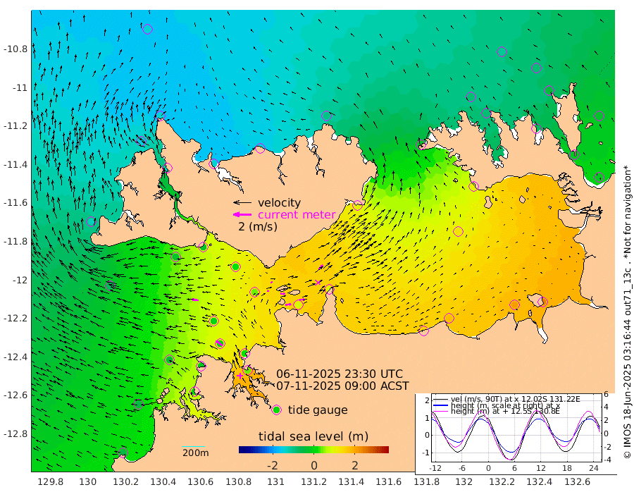 61cm/s 81T +4cm/s rms + 6cm/s 51T. Darwin_C1 52m 61cm/s 91T +4cm/s rms + 7cm/s -161T. Darwin_CW1 22m 18cm/s 58T +4cm/s rms + 8cm/s 61T. Darwin_CW2 34m 65cm/s 43T +3cm/s rms + 9cm/s 98T. Darwin_CW3 22m 50cm/s 92T +5cm/s rms + 7cm/s 88T. Darwin_C3 56m 21cm/s 64T +2cm/s rms + 9cm/s -126T. Darwin_CTbW 22m 74cm/s -84T +1cm/s rms + 1cm/s -47T. DARBGF 30m 89cm/s -54T +4cm/s rms + 3cm/s 80T. NRSDAR 19m -140cm Goodrich Bank -49cm Point Jenny -51cm Native Point -38cm Fish Reef -22cm Tapa Bay -133cm Point Fawcett (Offshore) 1cm Burge Point -32cm Munkunuwa -78cm Beagle A 21cm Parsons Bank -7cm Fenton Patches 36cm Hancox Shoal Area 20cm Nightcliff 39cm Darwin -8cm Charles Point Patches 80cm Glyde Point 146cm Chambers Bay 176cm Point Stuart 97cm Cape Hotham 129cm Christine Reef 203cm West Alligator Head 236cm East Field Island 106cm Two Hills Bay 102cm Camp Point -25cm Medina Inlet South -128cm South Barlow Point -148cm St. Asaph Bay -144cm Cape Van Dieman -135cm Snake Bay -137cm Cache Point -100cm Point Jahleel (Off) -30cm Cape Don -84cm Port Essington -89cm Smith Point - West -79cm NW Peacock Island -107cm North Of Jones Shoal -34cm Peacock Island -21cm Point David -76cm D'urville Point -12cm Copeland Island -34cm One Tree Point