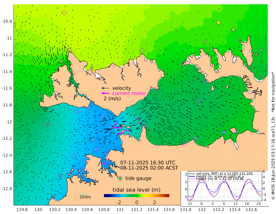 178cm/s -101T +4cm/s rms + 6cm/s 51T. Darwin_C1 52m 143cm/s -90T +4cm/s rms + 7cm/s -161T. Darwin_CW1 22m 94cm/s -107T +4cm/s rms + 8cm/s 61T. Darwin_CW2 34m 84cm/s -134T +3cm/s rms + 9cm/s 98T. Darwin_CW3 22m 145cm/s -91T +5cm/s rms + 7cm/s 88T. Darwin_C3 56m 97cm/s -115T +2cm/s rms + 9cm/s -126T. Darwin_CTbW 22m 17cm/s -109T +1cm/s rms + 1cm/s -47T. DARBGF 30m 15cm/s -103T +4cm/s rms + 3cm/s 80T. NRSDAR 19m 79cm Goodrich Bank -112cm Point Jenny -110cm Native Point -125cm Fish Reef -141cm Tapa Bay -7cm Point Fawcett (Offshore) -158cm Burge Point -151cm Munkunuwa -74cm Beagle A -172cm Parsons Bank -144cm Fenton Patches -165cm Hancox Shoal Area -169cm Nightcliff -180cm Darwin -141cm Charles Point Patches -125cm Glyde Point -99cm Chambers Bay -102cm Point Stuart -107cm Cape Hotham -89cm Christine Reef -114cm West Alligator Head -97cm East Field Island -81cm Two Hills Bay -71cm Camp Point -138cm Medina Inlet South 2cm South Barlow Point 35cm St. Asaph Bay 74cm Cape Van Dieman 68cm Snake Bay 73cm Cache Point 44cm Point Jahleel (Off) -12cm Cape Don 34cm Port Essington 32cm Smith Point - West 36cm NW Peacock Island 59cm North Of Jones Shoal 18cm Peacock Island 3cm Point David 27cm D'urville Point -4cm Copeland Island 11cm One Tree Point