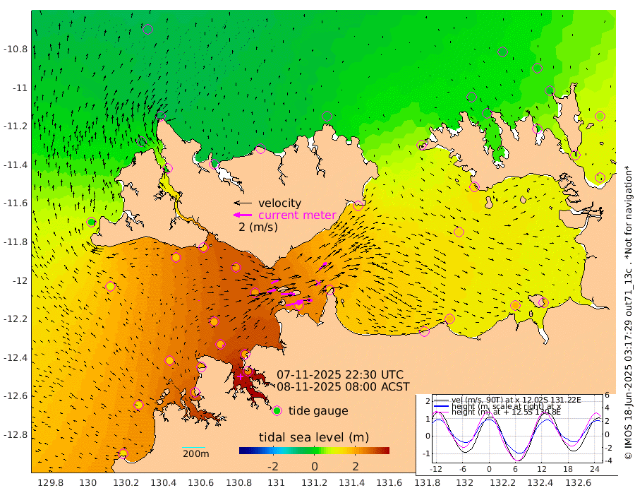 192cm/s 78T +4cm/s rms + 6cm/s 51T. Darwin_C1 52m 143cm/s 92T +4cm/s rms + 7cm/s -161T. Darwin_CW1 22m 92cm/s 72T +4cm/s rms + 8cm/s 61T. Darwin_CW2 34m 118cm/s 43T +3cm/s rms + 9cm/s 98T. Darwin_CW3 22m 152cm/s 89T +5cm/s rms + 7cm/s 88T. Darwin_C3 56m 92cm/s 65T +2cm/s rms + 9cm/s -126T. Darwin_CTbW 22m 7cm/s -12T +1cm/s rms + 1cm/s -47T. DARBGF 30m 13cm/s -9T +4cm/s rms + 3cm/s 80T. NRSDAR 19m -57cm Goodrich Bank 134cm Point Jenny 133cm Native Point 154cm Fish Reef 169cm Tapa Bay 21cm Point Fawcett (Offshore) 194cm Burge Point 158cm Munkunuwa 99cm Beagle A 210cm Parsons Bank 180cm Fenton Patches 205cm Hancox Shoal Area 199cm Nightcliff 231cm Darwin 190cm Charles Point Patches 182cm Glyde Point 154cm Chambers Bay 169cm Point Stuart 164cm Cape Hotham 140cm Christine Reef 181cm West Alligator Head 174cm East Field Island 139cm Two Hills Bay 134cm Camp Point 167cm Medina Inlet South 18cm South Barlow Point -25cm St. Asaph Bay -52cm Cape Van Dieman -39cm Snake Bay -47cm Cache Point -15cm Point Jahleel (Off) 57cm Cape Don 10cm Port Essington 7cm Smith Point - West 11cm NW Peacock Island -26cm North Of Jones Shoal -4cm Peacock Island 66cm Point David 21cm D'urville Point 72cm Copeland Island 53cm One Tree Point