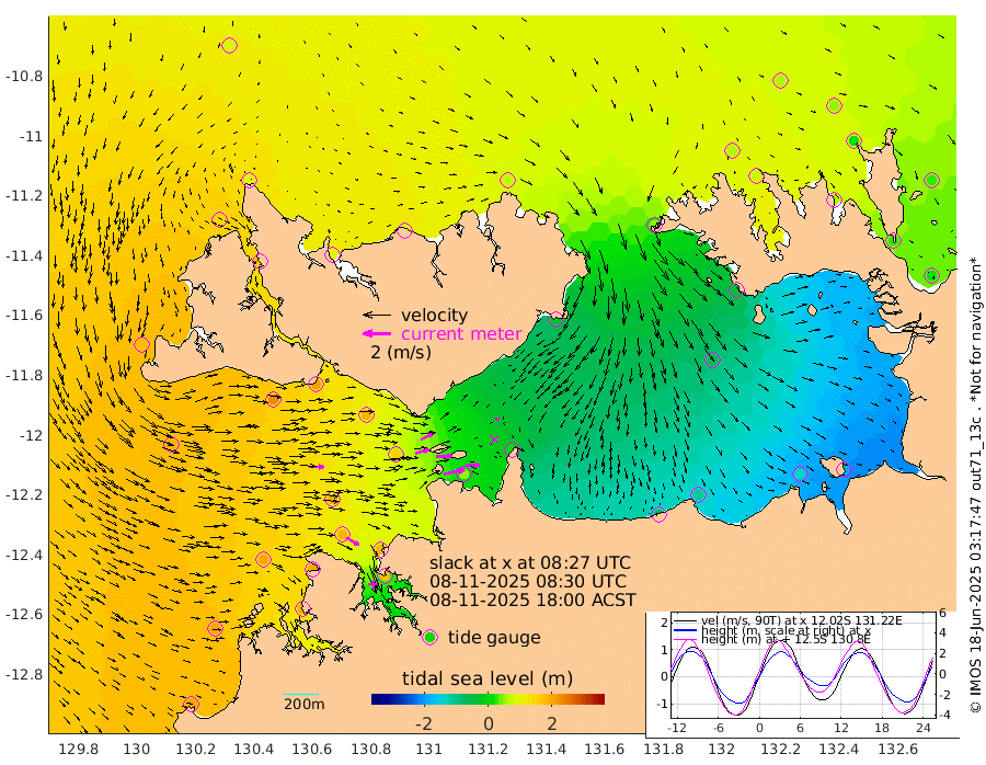 150cm/s 78T +4cm/s rms + 6cm/s 51T. Darwin_C1 52m 102cm/s 88T +4cm/s rms + 7cm/s -161T. Darwin_CW1 22m 100cm/s 74T +4cm/s rms + 8cm/s 61T. Darwin_CW2 34m 28cm/s 80T +3cm/s rms + 9cm/s 98T. Darwin_CW3 22m 114cm/s 87T +5cm/s rms + 7cm/s 88T. Darwin_C3 56m 99cm/s 64T +2cm/s rms + 9cm/s -126T. Darwin_CTbW 22m 104cm/s 90T +1cm/s rms + 1cm/s -47T. DARBGF 30m 104cm/s 120T +4cm/s rms + 3cm/s 80T. NRSDAR 19m 82cm Goodrich Bank 194cm Point Jenny 195cm Native Point 199cm Fish Reef 198cm Tapa Bay 173cm Point Fawcett (Offshore) 192cm Burge Point 226cm Munkunuwa 185cm Beagle A 185cm Parsons Bank 184cm Fenton Patches 155cm Hancox Shoal Area 181cm Nightcliff 176cm Darwin 185cm Charles Point Patches 52cm Glyde Point -75cm Chambers Bay -105cm Point Stuart 5cm Cape Hotham -65cm Christine Reef -126cm West Alligator Head -188cm East Field Island -40cm Two Hills Bay -43cm Camp Point 203cm Medina Inlet South 162cm South Barlow Point 142cm St. Asaph Bay 93cm Cape Van Dieman 94cm Snake Bay 82cm Cache Point 72cm Point Jahleel (Off) 50cm Cape Don 65cm Port Essington 72cm Smith Point - West 56cm NW Peacock Island 63cm North Of Jones Shoal 21cm Peacock Island 25cm Point David 63cm D'urville Point 20cm Copeland Island 31cm One Tree Point
