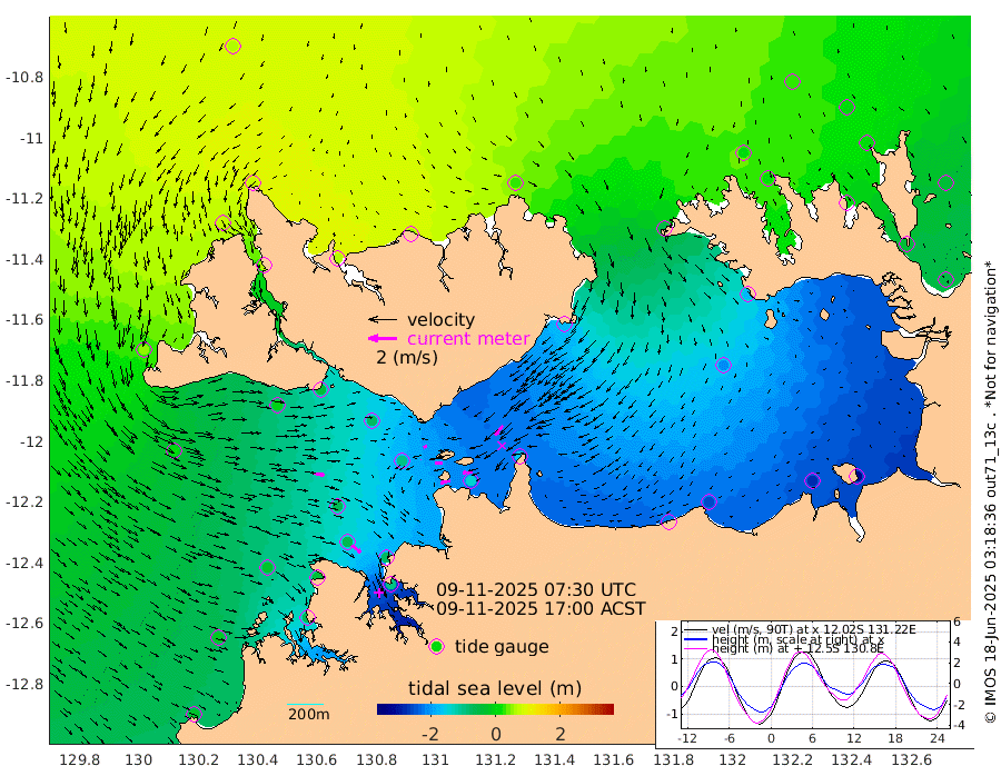 70cm/s -101T +4cm/s rms + 6cm/s 51T. Darwin_C1 52m 68cm/s -93T +4cm/s rms + 7cm/s -161T. Darwin_CW1 22m 2cm/s -73T +4cm/s rms + 8cm/s 61T. Darwin_CW2 34m 88cm/s -141T +3cm/s rms + 9cm/s 98T. Darwin_CW3 22m 48cm/s -87T +5cm/s rms + 7cm/s 88T. Darwin_C3 56m 25cm/s -115T +2cm/s rms + 9cm/s -126T. Darwin_CTbW 22m 73cm/s 97T +1cm/s rms + 1cm/s -47T. DARBGF 30m 83cm/s 127T +4cm/s rms + 3cm/s 80T. NRSDAR 19m 63cm Goodrich Bank -23cm Point Jenny -19cm Native Point -29cm Fish Reef -41cm Tapa Bay 49cm Point Fawcett (Offshore) -66cm Burge Point -2cm Munkunuwa 1cm Beagle A -68cm Parsons Bank -58cm Fenton Patches -91cm Hancox Shoal Area -75cm Nightcliff -98cm Darwin -66cm Charles Point Patches -145cm Glyde Point -222cm Chambers Bay -248cm Point Stuart -162cm Cape Hotham -206cm Christine Reef -276cm West Alligator Head -316cm East Field Island -178cm Two Hills Bay -174cm Camp Point -34cm Medina Inlet South 60cm South Barlow Point 73cm St. Asaph Bay 69cm Cape Van Dieman 63cm Snake Bay 51cm Cache Point 24cm Point Jahleel (Off) -47cm Cape Don 8cm Port Essington 14cm Smith Point - West 4cm NW Peacock Island 28cm North Of Jones Shoal 7cm Peacock Island -43cm Point David 4cm D'urville Point -49cm Copeland Island -37cm One Tree Point