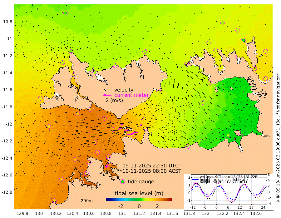 187cm/s 78T +4cm/s rms + 6cm/s 51T. Darwin_C1 52m 126cm/s 88T +4cm/s rms + 7cm/s -161T. Darwin_CW1 22m 78cm/s 75T +4cm/s rms + 8cm/s 61T. Darwin_CW2 34m 89cm/s 47T +3cm/s rms + 9cm/s 98T. Darwin_CW3 22m 116cm/s 89T +5cm/s rms + 7cm/s 88T. Darwin_C3 56m 101cm/s 64T +2cm/s rms + 9cm/s -126T. Darwin_CTbW 22m 39cm/s 86T +1cm/s rms + 1cm/s -47T. DARBGF 30m 36cm/s 109T +4cm/s rms + 3cm/s 80T. NRSDAR 19m 28cm Goodrich Bank 156cm Point Jenny 156cm Native Point 173cm Fish Reef 179cm Tapa Bay 98cm Point Fawcett (Offshore) 188cm Burge Point 175cm Munkunuwa 133cm Beagle A 203cm Parsons Bank 174cm Fenton Patches 186cm Hancox Shoal Area 183cm Nightcliff 215cm Darwin 201cm Charles Point Patches 137cm Glyde Point 64cm Chambers Bay 64cm Point Stuart 109cm Cape Hotham 58cm Christine Reef 58cm West Alligator Head 28cm East Field Island 80cm Two Hills Bay 74cm Camp Point 183cm Medina Inlet South 97cm South Barlow Point 61cm St. Asaph Bay 36cm Cape Van Dieman 49cm Snake Bay 36cm Cache Point 48cm Point Jahleel (Off) 84cm Cape Don 74cm Port Essington 71cm Smith Point - West 72cm NW Peacock Island 51cm North Of Jones Shoal 22cm Peacock Island 103cm Point David 82cm D'urville Point 104cm Copeland Island 97cm One Tree Point