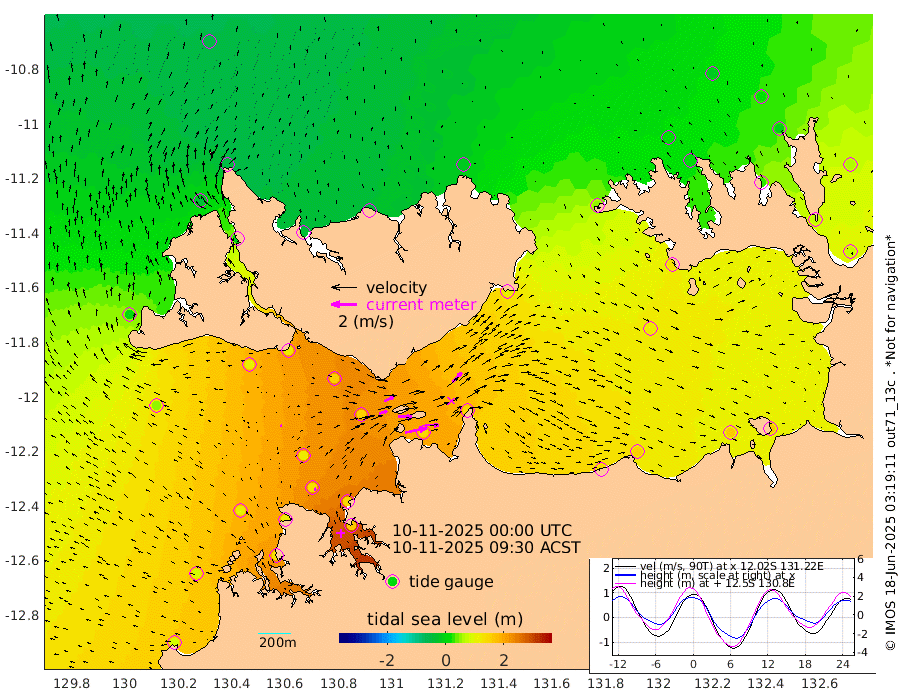 170cm/s 78T +4cm/s rms + 6cm/s 51T. Darwin_C1 52m 111cm/s 92T +4cm/s rms + 7cm/s -161T. Darwin_CW1 22m 66cm/s 72T +4cm/s rms + 8cm/s 61T. Darwin_CW2 34m 105cm/s 43T +3cm/s rms + 9cm/s 98T. Darwin_CW3 22m 109cm/s 90T +5cm/s rms + 7cm/s 88T. Darwin_C3 56m 82cm/s 65T +2cm/s rms + 9cm/s -126T. Darwin_CTbW 22m 10cm/s -60T +1cm/s rms + 1cm/s -47T. DARBGF 30m 19cm/s -33T +4cm/s rms + 3cm/s 80T. NRSDAR 19m -55cm Goodrich Bank 87cm Point Jenny 84cm Native Point 106cm Fish Reef 115cm Tapa Bay 2cm Point Fawcett (Offshore) 132cm Burge Point 103cm Munkunuwa 55cm Beagle A 154cm Parsons Bank 120cm Fenton Patches 152cm Hancox Shoal Area 139cm Nightcliff 169cm Darwin 135cm Charles Point Patches 144cm Glyde Point 138cm Chambers Bay 155cm Point Stuart 138cm Cape Hotham 123cm Christine Reef 167cm West Alligator Head 164cm East Field Island 126cm Two Hills Bay 112cm Camp Point 113cm Medina Inlet South -2cm South Barlow Point -36cm St. Asaph Bay -52cm Cape Van Dieman -41cm Snake Bay -44cm Cache Point -16cm Point Jahleel (Off) 50cm Cape Don 12cm Port Essington 10cm Smith Point - West 16cm NW Peacock Island -17cm North Of Jones Shoal -1cm Peacock Island 68cm Point David 25cm D'urville Point 75cm Copeland Island 58cm One Tree Point