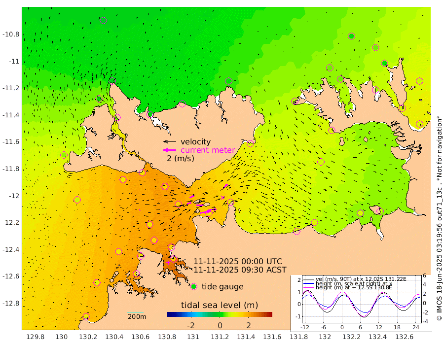 171cm/s 78T +4cm/s rms + 6cm/s 51T. Darwin_C1 52m 106cm/s 91T +4cm/s rms + 7cm/s -161T. Darwin_CW1 22m 64cm/s 74T +4cm/s rms + 8cm/s 61T. Darwin_CW2 34m 96cm/s 44T +3cm/s rms + 9cm/s 98T. Darwin_CW3 22m 101cm/s 89T +5cm/s rms + 7cm/s 88T. Darwin_C3 56m 85cm/s 65T +2cm/s rms + 9cm/s -126T. Darwin_CTbW 22m 15cm/s 79T +1cm/s rms + 1cm/s -47T. DARBGF 30m 13cm/s 87T +4cm/s rms + 3cm/s 80T. NRSDAR 19m -12cm Goodrich Bank 103cm Point Jenny 100cm Native Point 119cm Fish Reef 125cm Tapa Bay 45cm Point Fawcett (Offshore) 133cm Burge Point 118cm Munkunuwa 75cm Beagle A 155cm Parsons Bank 120cm Fenton Patches 147cm Hancox Shoal Area 137cm Nightcliff 165cm Darwin 145cm Charles Point Patches 121cm Glyde Point 91cm Chambers Bay 99cm Point Stuart 109cm Cape Hotham 79cm Christine Reef 101cm West Alligator Head 85cm East Field Island 94cm Two Hills Bay 81cm Camp Point 127cm Medina Inlet South 40cm South Barlow Point 11cm St. Asaph Bay -7cm Cape Van Dieman 4cm Snake Bay -1cm Cache Point 16cm Point Jahleel (Off) 64cm Cape Don 43cm Port Essington 41cm Smith Point - West 45cm NW Peacock Island 22cm North Of Jones Shoal 12cm Peacock Island 84cm Point David 54cm D'urville Point 88cm Copeland Island 78cm One Tree Point
