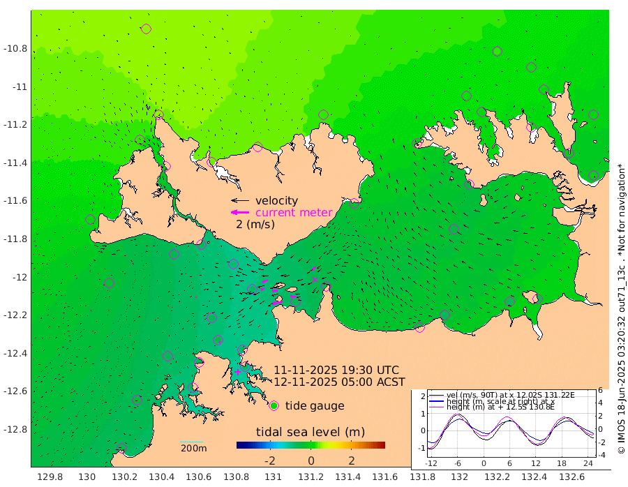 120cm/s -101T +4cm/s rms + 6cm/s 51T. Darwin_C1 52m 67cm/s -90T +4cm/s rms + 7cm/s -161T. Darwin_CW1 22m 43cm/s -106T +4cm/s rms + 8cm/s 61T. Darwin_CW2 34m 55cm/s -135T +3cm/s rms + 9cm/s 98T. Darwin_CW3 22m 59cm/s -91T +5cm/s rms + 7cm/s 88T. Darwin_C3 56m 69cm/s -116T +2cm/s rms + 9cm/s -126T. Darwin_CTbW 22m 11cm/s -100T +1cm/s rms + 1cm/s -47T. DARBGF 30m 11cm/s -89T +4cm/s rms + 3cm/s 80T. NRSDAR 19m 50cm Goodrich Bank -48cm Point Jenny -44cm Native Point -61cm Fish Reef -59cm Tapa Bay 3cm Point Fawcett (Offshore) -65cm Burge Point -63cm Munkunuwa -33cm Beagle A -80cm Parsons Bank -66cm Fenton Patches -76cm Hancox Shoal Area -75cm Nightcliff -78cm Darwin -55cm Charles Point Patches -62cm Glyde Point -62cm Chambers Bay -68cm Point Stuart -61cm Cape Hotham -53cm Christine Reef -77cm West Alligator Head -69cm East Field Island -55cm Two Hills Bay -32cm Camp Point -58cm Medina Inlet South 11cm South Barlow Point 28cm St. Asaph Bay 47cm Cape Van Dieman 44cm Snake Bay 41cm Cache Point 24cm Point Jahleel (Off) -8cm Cape Don 17cm Port Essington 11cm Smith Point - West 14cm NW Peacock Island 31cm North Of Jones Shoal 9cm Peacock Island -1cm Point David 8cm D'urville Point -7cm Copeland Island 2cm One Tree Point