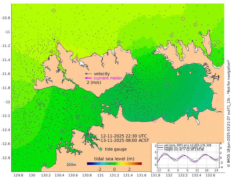 6cm/s 90T +4cm/s rms + 6cm/s 51T. Darwin_C1 52m 11cm/s 74T +4cm/s rms + 7cm/s -161T. Darwin_CW1 22m 7cm/s -117T +4cm/s rms + 8cm/s 61T. Darwin_CW2 34m 19cm/s -149T +3cm/s rms + 9cm/s 98T. Darwin_CW3 22m 11cm/s -87T +5cm/s rms + 7cm/s 88T. Darwin_C3 56m 7cm/s 57T +2cm/s rms + 9cm/s -126T. Darwin_CTbW 22m 16cm/s 99T +1cm/s rms + 1cm/s -47T. DARBGF 30m 16cm/s 128T +4cm/s rms + 3cm/s 80T. NRSDAR 19m 50cm Goodrich Bank -9cm Point Jenny -7cm Native Point -16cm Fish Reef -9cm Tapa Bay 30cm Point Fawcett (Offshore) -24cm Burge Point -2cm Munkunuwa -11cm Beagle A -14cm Parsons Bank -32cm Fenton Patches -21cm Hancox Shoal Area -25cm Nightcliff -18cm Darwin -1cm Charles Point Patches -42cm Glyde Point -79cm Chambers Bay -86cm Point Stuart -50cm Cape Hotham -71cm Christine Reef -101cm West Alligator Head -118cm East Field Island -54cm Two Hills Bay -45cm Camp Point -3cm Medina Inlet South 42cm South Barlow Point 43cm St. Asaph Bay 52cm Cape Van Dieman 57cm Snake Bay 44cm Cache Point 33cm Point Jahleel (Off) 11cm Cape Don 40cm Port Essington 35cm Smith Point - West 38cm NW Peacock Island 48cm North Of Jones Shoal 17cm Peacock Island 36cm Point David 38cm D'urville Point 32cm Copeland Island 37cm One Tree Point
