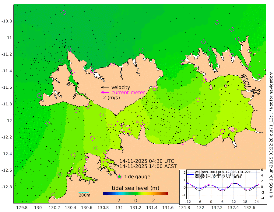 39cm/s 80T +4cm/s rms + 6cm/s 51T. Darwin_C1 52m 15cm/s 85T +4cm/s rms + 7cm/s -161T. Darwin_CW1 22m 20cm/s 72T +4cm/s rms + 8cm/s 61T. Darwin_CW2 34m 25cm/s 43T +3cm/s rms + 9cm/s 98T. Darwin_CW3 22m 26cm/s 89T +5cm/s rms + 7cm/s 88T. Darwin_C3 56m 22cm/s 65T +2cm/s rms + 9cm/s -126T. Darwin_CTbW 22m 3cm/s 66T +1cm/s rms + 1cm/s -47T. DARBGF 30m 3cm/s -15T +4cm/s rms + 3cm/s 80T. NRSDAR 19m -38cm Goodrich Bank 39cm Point Jenny 33cm Native Point 48cm Fish Reef 44cm Tapa Bay 4cm Point Fawcett (Offshore) 49cm Burge Point 35cm Munkunuwa 23cm Beagle A 55cm Parsons Bank 46cm Fenton Patches 58cm Hancox Shoal Area 56cm Nightcliff 57cm Darwin 45cm Charles Point Patches 58cm Glyde Point 80cm Chambers Bay 81cm Point Stuart 66cm Cape Hotham 61cm Christine Reef 89cm West Alligator Head 89cm East Field Island 63cm Two Hills Bay 48cm Camp Point 39cm Medina Inlet South -15cm South Barlow Point -23cm St. Asaph Bay -35cm Cape Van Dieman -36cm Snake Bay -25cm Cache Point -14cm Point Jahleel (Off) 20cm Cape Don -2cm Port Essington -1cm Smith Point - West 0cm NW Peacock Island -10cm North Of Jones Shoal -1cm Peacock Island 24cm Point David 4cm D'urville Point 30cm Copeland Island 21cm One Tree Point