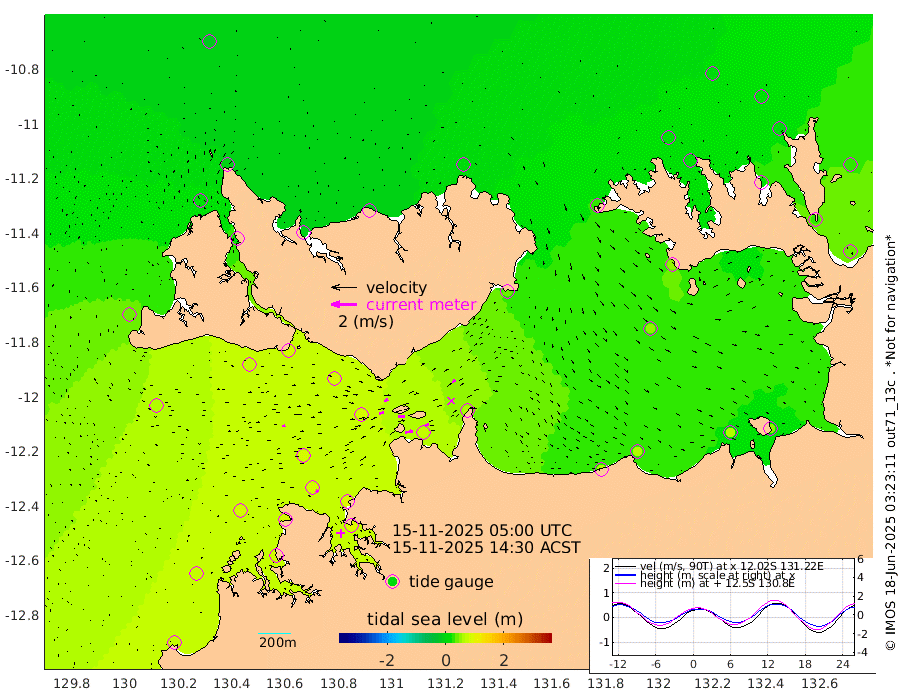 60cm/s 79T +4cm/s rms + 6cm/s 51T. Darwin_C1 52m 33cm/s 89T +4cm/s rms + 7cm/s -161T. Darwin_CW1 22m 39cm/s 74T +4cm/s rms + 8cm/s 61T. Darwin_CW2 34m 28cm/s 47T +3cm/s rms + 9cm/s 98T. Darwin_CW3 22m 53cm/s 88T +5cm/s rms + 7cm/s 88T. Darwin_C3 56m 33cm/s 65T +2cm/s rms + 9cm/s -126T. Darwin_CTbW 22m 23cm/s 88T +1cm/s rms + 1cm/s -47T. DARBGF 30m 19cm/s 115T +4cm/s rms + 3cm/s 80T. NRSDAR 19m -15cm Goodrich Bank 77cm Point Jenny 71cm Native Point 86cm Fish Reef 84cm Tapa Bay 44cm Point Fawcett (Offshore) 84cm Burge Point 77cm Munkunuwa 60cm Beagle A 87cm Parsons Bank 79cm Fenton Patches 87cm Hancox Shoal Area 91cm Nightcliff 90cm Darwin 82cm Charles Point Patches 68cm Glyde Point 65cm Chambers Bay 60cm Point Stuart 66cm Cape Hotham 47cm Christine Reef 63cm West Alligator Head 51cm East Field Island 55cm Two Hills Bay 42cm Camp Point 79cm Medina Inlet South 22cm South Barlow Point 12cm St. Asaph Bay -9cm Cape Van Dieman -9cm Snake Bay -2cm Cache Point 6cm Point Jahleel (Off) 32cm Cape Don 15cm Port Essington 16cm Smith Point - West 14cm NW Peacock Island 9cm North Of Jones Shoal 5cm Peacock Island 31cm Point David 19cm D'urville Point 35cm Copeland Island 30cm One Tree Point