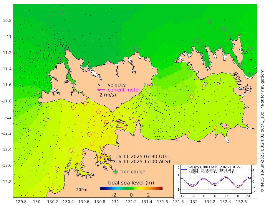 53cm/s 80T +4cm/s rms + 6cm/s 51T. Darwin_C1 52m 49cm/s 93T +4cm/s rms + 7cm/s -161T. Darwin_CW1 22m 43cm/s 73T +4cm/s rms + 8cm/s 61T. Darwin_CW2 34m 34cm/s 39T +3cm/s rms + 9cm/s 98T. Darwin_CW3 22m 73cm/s 90T +5cm/s rms + 7cm/s 88T. Darwin_C3 56m 23cm/s 66T +2cm/s rms + 9cm/s -126T. Darwin_CTbW 22m 7cm/s 47T +1cm/s rms + 1cm/s -47T. DARBGF 30m 2cm/s 3T +4cm/s rms + 3cm/s 80T. NRSDAR 19m -28cm Goodrich Bank 91cm Point Jenny 86cm Native Point 105cm Fish Reef 104cm Tapa Bay 35cm Point Fawcett (Offshore) 120cm Burge Point 95cm Munkunuwa 75cm Beagle A 112cm Parsons Bank 113cm Fenton Patches 116cm Hancox Shoal Area 121cm Nightcliff 128cm Darwin 111cm Charles Point Patches 107cm Glyde Point 110cm Chambers Bay 113cm Point Stuart 105cm Cape Hotham 95cm Christine Reef 124cm West Alligator Head 125cm East Field Island 90cm Two Hills Bay 84cm Camp Point 101cm Medina Inlet South 13cm South Barlow Point 1cm St. Asaph Bay -26cm Cape Van Dieman -26cm Snake Bay -17cm Cache Point -3cm Point Jahleel (Off) 32cm Cape Don 0cm Port Essington -1cm Smith Point - West -3cm NW Peacock Island -9cm North Of Jones Shoal -2cm Peacock Island 13cm Point David 0cm D'urville Point 17cm Copeland Island 13cm One Tree Point