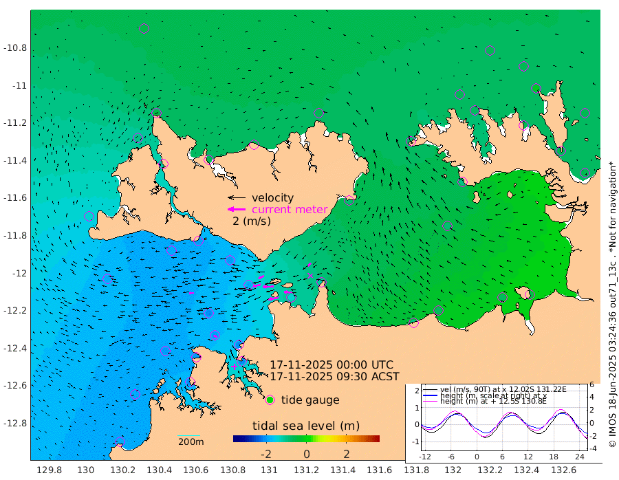 116cm/s -102T +4cm/s rms + 6cm/s 51T. Darwin_C1 52m 89cm/s -89T +4cm/s rms + 7cm/s -161T. Darwin_CW1 22m 84cm/s -107T +4cm/s rms + 8cm/s 61T. Darwin_CW2 34m 46cm/s -132T +3cm/s rms + 9cm/s 98T. Darwin_CW3 22m 118cm/s -91T +5cm/s rms + 7cm/s 88T. Darwin_C3 56m 70cm/s -115T +2cm/s rms + 9cm/s -126T. Darwin_CTbW 22m 53cm/s -93T +1cm/s rms + 1cm/s -47T. DARBGF 30m 44cm/s -63T +4cm/s rms + 3cm/s 80T. NRSDAR 19m -47cm Goodrich Bank -186cm Point Jenny -183cm Native Point -202cm Fish Reef -195cm Tapa Bay -137cm Point Fawcett (Offshore) -207cm Burge Point -184cm Munkunuwa -180cm Beagle A -193cm Parsons Bank -206cm Fenton Patches -184cm Hancox Shoal Area -208cm Nightcliff -210cm Darwin -202cm Charles Point Patches -142cm Glyde Point -92cm Chambers Bay -79cm Point Stuart -118cm Cape Hotham -82cm Christine Reef -78cm West Alligator Head -57cm East Field Island -91cm Two Hills Bay -84cm Camp Point -197cm Medina Inlet South -115cm South Barlow Point -94cm St. Asaph Bay -53cm Cape Van Dieman -58cm Snake Bay -59cm Cache Point -63cm Point Jahleel (Off) -86cm Cape Don -65cm Port Essington -69cm Smith Point - West -61cm NW Peacock Island -59cm North Of Jones Shoal -22cm Peacock Island -58cm Point David -67cm D'urville Point -58cm Copeland Island -64cm One Tree Point