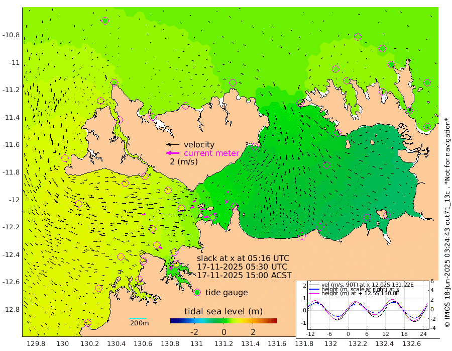 77cm/s 78T +4cm/s rms + 6cm/s 51T. Darwin_C1 52m 53cm/s 87T +4cm/s rms + 7cm/s -161T. Darwin_CW1 22m 58cm/s 75T +4cm/s rms + 8cm/s 61T. Darwin_CW2 34m 20cm/s 63T +3cm/s rms + 9cm/s 98T. Darwin_CW3 22m 75cm/s 87T +5cm/s rms + 7cm/s 88T. Darwin_C3 56m 47cm/s 65T +2cm/s rms + 9cm/s -126T. Darwin_CTbW 22m 58cm/s 91T +1cm/s rms + 1cm/s -47T. DARBGF 30m 57cm/s 120T +4cm/s rms + 3cm/s 80T. NRSDAR 19m 30cm Goodrich Bank 111cm Point Jenny 109cm Native Point 114cm Fish Reef 118cm Tapa Bay 95cm Point Fawcett (Offshore) 101cm Burge Point 119cm Munkunuwa 97cm Beagle A 104cm Parsons Bank 100cm Fenton Patches 98cm Hancox Shoal Area 113cm Nightcliff 103cm Darwin 107cm Charles Point Patches 45cm Glyde Point 0cm Chambers Bay -23cm Point Stuart 27cm Cape Hotham -12cm Christine Reef -31cm West Alligator Head -63cm East Field Island 5cm Two Hills Bay -3cm Camp Point 112cm Medina Inlet South 76cm South Barlow Point 68cm St. Asaph Bay 38cm Cape Van Dieman 38cm Snake Bay 36cm Cache Point 35cm Point Jahleel (Off) 35cm Cape Don 36cm Port Essington 40cm Smith Point - West 33cm NW Peacock Island 37cm North Of Jones Shoal 13cm Peacock Island 31cm Point David 38cm D'urville Point 31cm Copeland Island 32cm One Tree Point