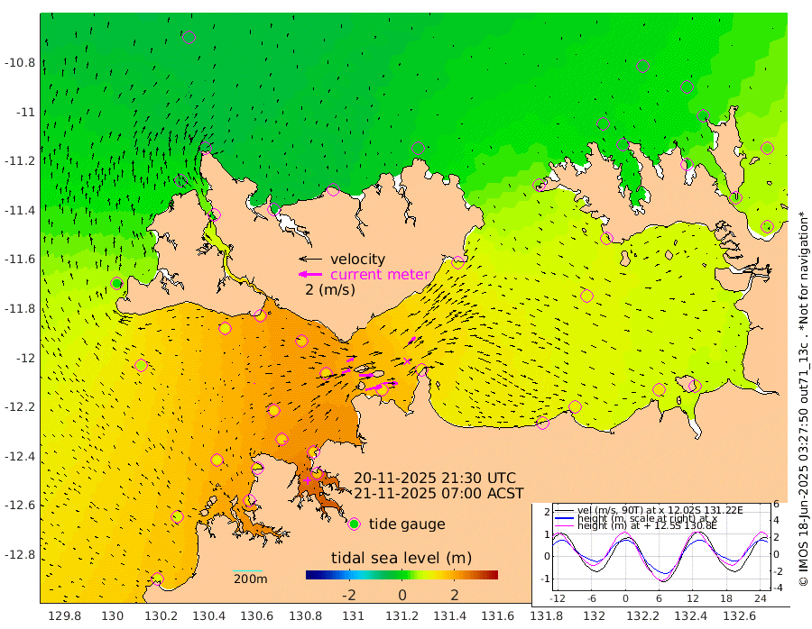 142cm/s 78T +4cm/s rms + 6cm/s 51T. Darwin_C1 52m 121cm/s 92T +4cm/s rms + 7cm/s -161T. Darwin_CW1 22m 73cm/s 72T +4cm/s rms + 8cm/s 61T. Darwin_CW2 34m 89cm/s 43T +3cm/s rms + 9cm/s 98T. Darwin_CW3 22m 127cm/s 89T +5cm/s rms + 7cm/s 88T. Darwin_C3 56m 66cm/s 66T +2cm/s rms + 9cm/s -126T. Darwin_CTbW 22m 6cm/s 2T +1cm/s rms + 1cm/s -47T. DARBGF 30m 10cm/s -12T +4cm/s rms + 3cm/s 80T. NRSDAR 19m -48cm Goodrich Bank 90cm Point Jenny 88cm Native Point 112cm Fish Reef 117cm Tapa Bay 15cm Point Fawcett (Offshore) 136cm Burge Point 111cm Munkunuwa 64cm Beagle A 148cm Parsons Bank 124cm Fenton Patches 144cm Hancox Shoal Area 147cm Nightcliff 172cm Darwin 141cm Charles Point Patches 132cm Glyde Point 113cm Chambers Bay 123cm Point Stuart 119cm Cape Hotham 97cm Christine Reef 131cm West Alligator Head 127cm East Field Island 101cm Two Hills Bay 98cm Camp Point 124cm Medina Inlet South 11cm South Barlow Point -21cm St. Asaph Bay -45cm Cape Van Dieman -32cm Snake Bay -41cm Cache Point -17cm Point Jahleel (Off) 41cm Cape Don 5cm Port Essington 0cm Smith Point - West 2cm NW Peacock Island -15cm North Of Jones Shoal -1cm Peacock Island 42cm Point David 10cm D'urville Point 47cm Copeland Island 40cm One Tree Point