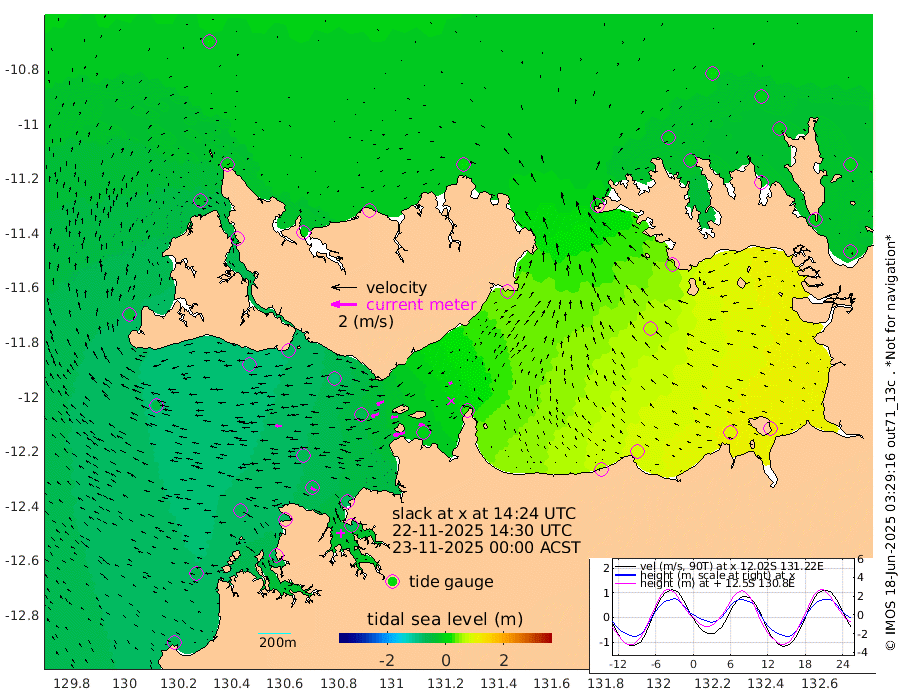 93cm/s -103T +4cm/s rms + 6cm/s 51T. Darwin_C1 52m 46cm/s -87T +4cm/s rms + 7cm/s -161T. Darwin_CW1 22m 62cm/s -111T +4cm/s rms + 8cm/s 61T. Darwin_CW2 34m 26cm/s -109T +3cm/s rms + 9cm/s 98T. Darwin_CW3 22m 51cm/s -94T +5cm/s rms + 7cm/s 88T. Darwin_C3 56m 58cm/s -116T +2cm/s rms + 9cm/s -126T. Darwin_CTbW 22m 49cm/s -89T +1cm/s rms + 1cm/s -47T. DARBGF 30m 44cm/s -60T +4cm/s rms + 3cm/s 80T. NRSDAR 19m 6cm Goodrich Bank -65cm Point Jenny -66cm Native Point -63cm Fish Reef -72cm Tapa Bay -33cm Point Fawcett (Offshore) -70cm Burge Point -90cm Munkunuwa -54cm Beagle A -81cm Parsons Bank -67cm Fenton Patches -65cm Hancox Shoal Area -78cm Nightcliff -68cm Darwin -64cm Charles Point Patches -2cm Glyde Point 66cm Chambers Bay 85cm Point Stuart 23cm Cape Hotham 57cm Christine Reef 99cm West Alligator Head 134cm East Field Island 51cm Two Hills Bay 46cm Camp Point -72cm Medina Inlet South -43cm South Barlow Point -23cm St. Asaph Bay -1cm Cape Van Dieman -5cm Snake Bay 9cm Cache Point 6cm Point Jahleel (Off) 4cm Cape Don -4cm Port Essington -9cm Smith Point - West -5cm NW Peacock Island 3cm North Of Jones Shoal -1cm Peacock Island -11cm Point David -13cm D'urville Point -13cm Copeland Island -6cm One Tree Point