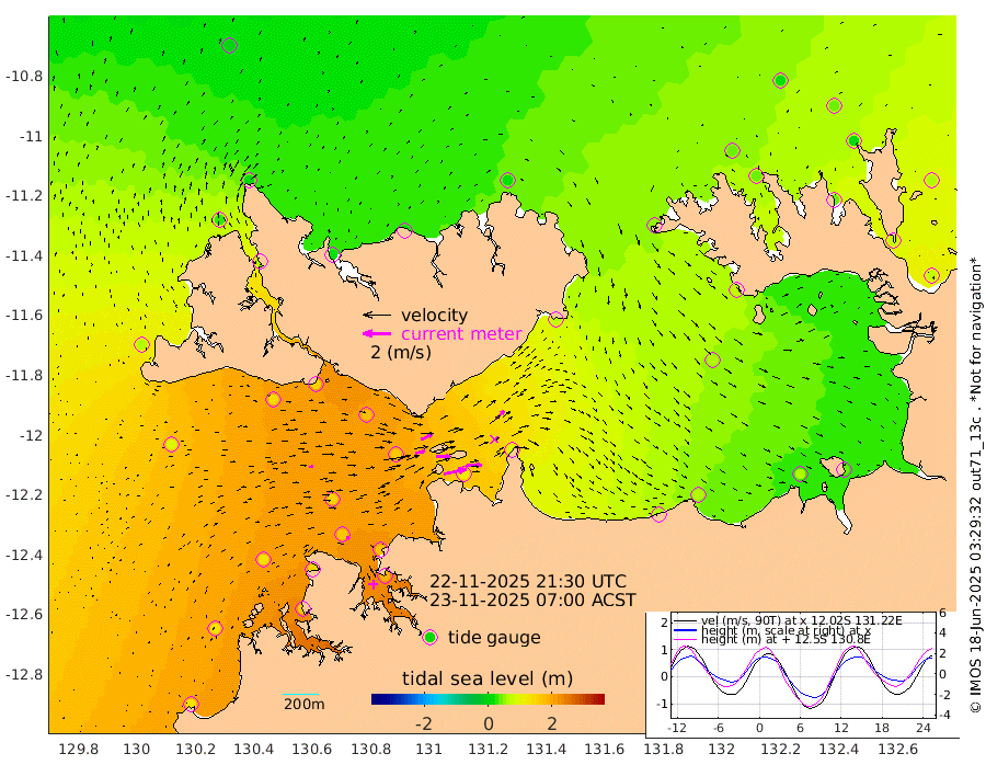 162cm/s 77T +4cm/s rms + 6cm/s 51T. Darwin_C1 52m 116cm/s 88T +4cm/s rms + 7cm/s -161T. Darwin_CW1 22m 69cm/s 75T +4cm/s rms + 8cm/s 61T. Darwin_CW2 34m 85cm/s 45T +3cm/s rms + 9cm/s 98T. Darwin_CW3 22m 103cm/s 89T +5cm/s rms + 7cm/s 88T. Darwin_C3 56m 88cm/s 64T +2cm/s rms + 9cm/s -126T. Darwin_CTbW 22m 26cm/s 84T +1cm/s rms + 1cm/s -47T. DARBGF 30m 25cm/s 103T +4cm/s rms + 3cm/s 80T. NRSDAR 19m -2cm Goodrich Bank 124cm Point Jenny 126cm Native Point 134cm Fish Reef 151cm Tapa Bay 60cm Point Fawcett (Offshore) 158cm Burge Point 144cm Munkunuwa 100cm Beagle A 170cm Parsons Bank 147cm Fenton Patches 163cm Hancox Shoal Area 171cm Nightcliff 185cm Darwin 165cm Charles Point Patches 120cm Glyde Point 66cm Chambers Bay 63cm Point Stuart 97cm Cape Hotham 60cm Christine Reef 60cm West Alligator Head 39cm East Field Island 68cm Two Hills Bay 73cm Camp Point 151cm Medina Inlet South 61cm South Barlow Point 29cm St. Asaph Bay 4cm Cape Van Dieman 19cm Snake Bay 2cm Cache Point 19cm Point Jahleel (Off) 56cm Cape Don 36cm Port Essington 34cm Smith Point - West 36cm NW Peacock Island 20cm North Of Jones Shoal 11cm Peacock Island 73cm Point David 45cm D'urville Point 74cm Copeland Island 65cm One Tree Point