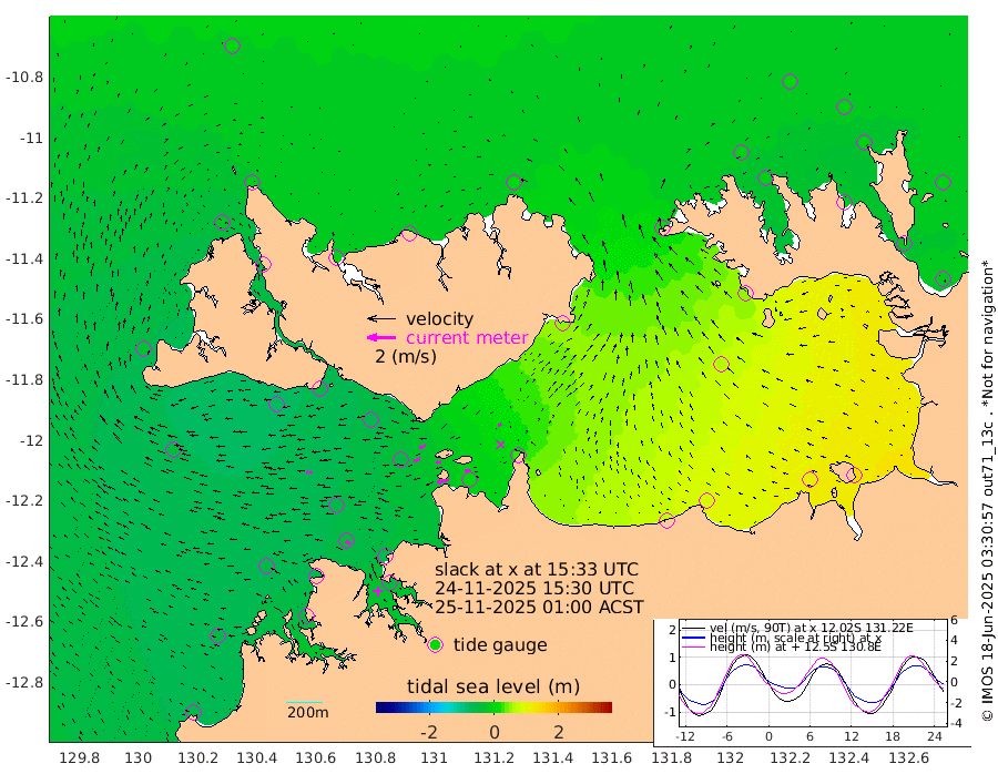 89cm/s -102T +4cm/s rms + 6cm/s 51T. Darwin_C1 52m 38cm/s -87T +4cm/s rms + 7cm/s -161T. Darwin_CW1 22m 47cm/s -112T +4cm/s rms + 8cm/s 61T. Darwin_CW2 34m 25cm/s -109T +3cm/s rms + 9cm/s 98T. Darwin_CW3 22m 34cm/s -95T +5cm/s rms + 7cm/s 88T. Darwin_C3 56m 50cm/s -117T +2cm/s rms + 9cm/s -126T. Darwin_CTbW 22m 42cm/s -88T +1cm/s rms + 1cm/s -47T. DARBGF 30m 38cm/s -60T +4cm/s rms + 3cm/s 80T. NRSDAR 19m 4cm Goodrich Bank -48cm Point Jenny -49cm Native Point -46cm Fish Reef -54cm Tapa Bay -25cm Point Fawcett (Offshore) -53cm Burge Point -76cm Munkunuwa -40cm Beagle A -66cm Parsons Bank -49cm Fenton Patches -49cm Hancox Shoal Area -58cm Nightcliff -48cm Darwin -43cm Charles Point Patches 10cm Glyde Point 77cm Chambers Bay 90cm Point Stuart 29cm Cape Hotham 66cm Christine Reef 103cm West Alligator Head 138cm East Field Island 55cm Two Hills Bay 55cm Camp Point -54cm Medina Inlet South -37cm South Barlow Point -19cm St. Asaph Bay -3cm Cape Van Dieman -7cm Snake Bay 7cm Cache Point 4cm Point Jahleel (Off) 8cm Cape Don -2cm Port Essington -8cm Smith Point - West -6cm NW Peacock Island 2cm North Of Jones Shoal -1cm Peacock Island -14cm Point David -13cm D'urville Point -15cm Copeland Island -7cm One Tree Point
