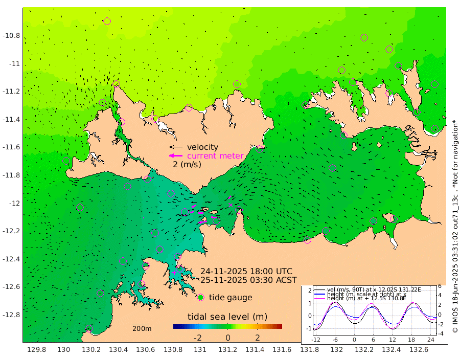 133cm/s -101T +4cm/s rms + 6cm/s 51T. Darwin_C1 52m 89cm/s -90T +4cm/s rms + 7cm/s -161T. Darwin_CW1 22m 52cm/s -107T +4cm/s rms + 8cm/s 61T. Darwin_CW2 34m 64cm/s -135T +3cm/s rms + 9cm/s 98T. Darwin_CW3 22m 75cm/s -90T +5cm/s rms + 7cm/s 88T. Darwin_C3 56m 76cm/s -115T +2cm/s rms + 9cm/s -126T. Darwin_CTbW 22m 7cm/s -113T +1cm/s rms + 1cm/s -47T. DARBGF 30m 9cm/s -119T +4cm/s rms + 3cm/s 80T. NRSDAR 19m 69cm Goodrich Bank -41cm Point Jenny -38cm Native Point -48cm Fish Reef -58cm Tapa Bay 21cm Point Fawcett (Offshore) -65cm Burge Point -62cm Munkunuwa -19cm Beagle A -80cm Parsons Bank -62cm Fenton Patches -82cm Hancox Shoal Area -91cm Nightcliff -83cm Darwin -56cm Charles Point Patches -60cm Glyde Point -64cm Chambers Bay -61cm Point Stuart -56cm Cape Hotham -57cm Christine Reef -71cm West Alligator Head -65cm East Field Island -46cm Two Hills Bay -35cm Camp Point -57cm Medina Inlet South 24cm South Barlow Point 43cm St. Asaph Bay 68cm Cape Van Dieman 62cm Snake Bay 65cm Cache Point 44cm Point Jahleel (Off) 6cm Cape Don 38cm Port Essington 32cm Smith Point - West 35cm NW Peacock Island 45cm North Of Jones Shoal 14cm Peacock Island 16cm Point David 29cm D'urville Point 10cm Copeland Island 18cm One Tree Point