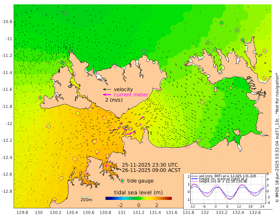 149cm/s 78T +4cm/s rms + 6cm/s 51T. Darwin_C1 52m 88cm/s 89T +4cm/s rms + 7cm/s -161T. Darwin_CW1 22m 48cm/s 75T +4cm/s rms + 8cm/s 61T. Darwin_CW2 34m 81cm/s 45T +3cm/s rms + 9cm/s 98T. Darwin_CW3 22m 70cm/s 89T +5cm/s rms + 7cm/s 88T. Darwin_C3 56m 76cm/s 64T +2cm/s rms + 9cm/s -126T. Darwin_CTbW 22m 13cm/s 82T +1cm/s rms + 1cm/s -47T. DARBGF 30m 13cm/s 89T +4cm/s rms + 3cm/s 80T. NRSDAR 19m -11cm Goodrich Bank 84cm Point Jenny 85cm Native Point 84cm Fish Reef 108cm Tapa Bay 28cm Point Fawcett (Offshore) 105cm Burge Point 98cm Munkunuwa 58cm Beagle A 125cm Parsons Bank 97cm Fenton Patches 124cm Hancox Shoal Area 119cm Nightcliff 130cm Darwin 114cm Charles Point Patches 88cm Glyde Point 55cm Chambers Bay 54cm Point Stuart 74cm Cape Hotham 51cm Christine Reef 53cm West Alligator Head 36cm East Field Island 55cm Two Hills Bay 56cm Camp Point 99cm Medina Inlet South 31cm South Barlow Point 7cm St. Asaph Bay -6cm Cape Van Dieman 4cm Snake Bay -7cm Cache Point 8cm Point Jahleel (Off) 40cm Cape Don 26cm Port Essington 26cm Smith Point - West 30cm NW Peacock Island 8cm North Of Jones Shoal 6cm Peacock Island 69cm Point David 38cm D'urville Point 71cm Copeland Island 56cm One Tree Point