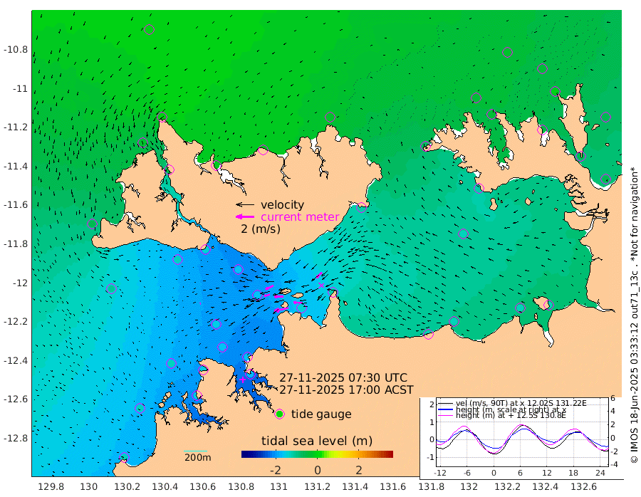 161cm/s -102T +4cm/s rms + 6cm/s 51T. Darwin_C1 52m 100cm/s -90T +4cm/s rms + 7cm/s -161T. Darwin_CW1 22m 63cm/s -106T +4cm/s rms + 8cm/s 61T. Darwin_CW2 34m 85cm/s -134T +3cm/s rms + 9cm/s 98T. Darwin_CW3 22m 99cm/s -90T +5cm/s rms + 7cm/s 88T. Darwin_C3 56m 93cm/s -115T +2cm/s rms + 9cm/s -126T. Darwin_CTbW 22m 8cm/s -124T +1cm/s rms + 1cm/s -47T. DARBGF 30m 8cm/s -158T +4cm/s rms + 3cm/s 80T. NRSDAR 19m -8cm Goodrich Bank -132cm Point Jenny -132cm Native Point -129cm Fish Reef -151cm Tapa Bay -60cm Point Fawcett (Offshore) -157cm Burge Point -127cm Munkunuwa -104cm Beagle A -160cm Parsons Bank -148cm Fenton Patches -165cm Hancox Shoal Area -166cm Nightcliff -179cm Darwin -162cm Charles Point Patches -143cm Glyde Point -133cm Chambers Bay -126cm Point Stuart -124cm Cape Hotham -128cm Christine Reef -134cm West Alligator Head -128cm East Field Island -113cm Two Hills Bay -116cm Camp Point -142cm Medina Inlet South -52cm South Barlow Point -29cm St. Asaph Bay -10cm Cape Van Dieman -17cm Snake Bay -15cm Cache Point -29cm Point Jahleel (Off) -73cm Cape Don -41cm Port Essington -41cm Smith Point - West -41cm NW Peacock Island -23cm North Of Jones Shoal -10cm Peacock Island -65cm Point David -46cm D'urville Point -66cm Copeland Island -61cm One Tree Point